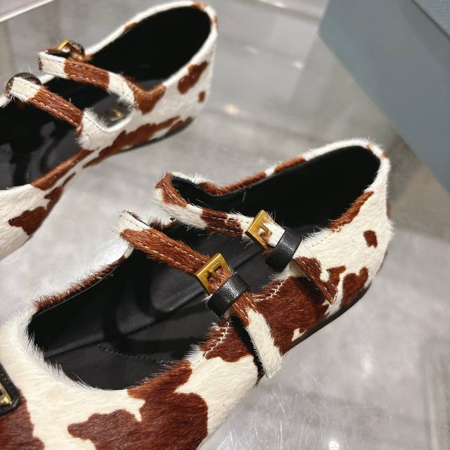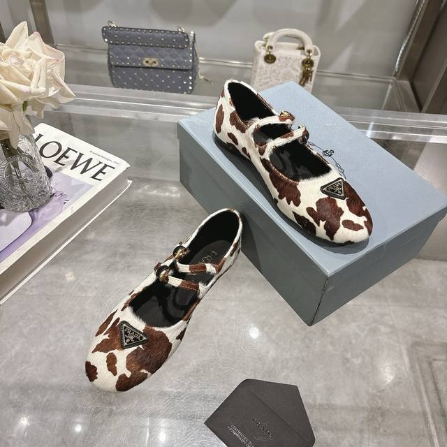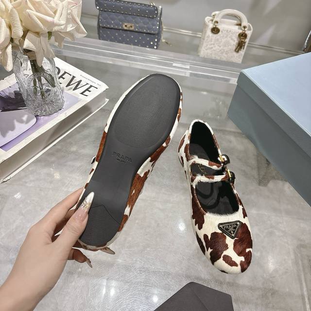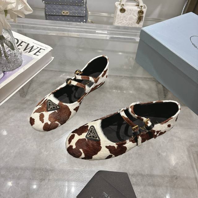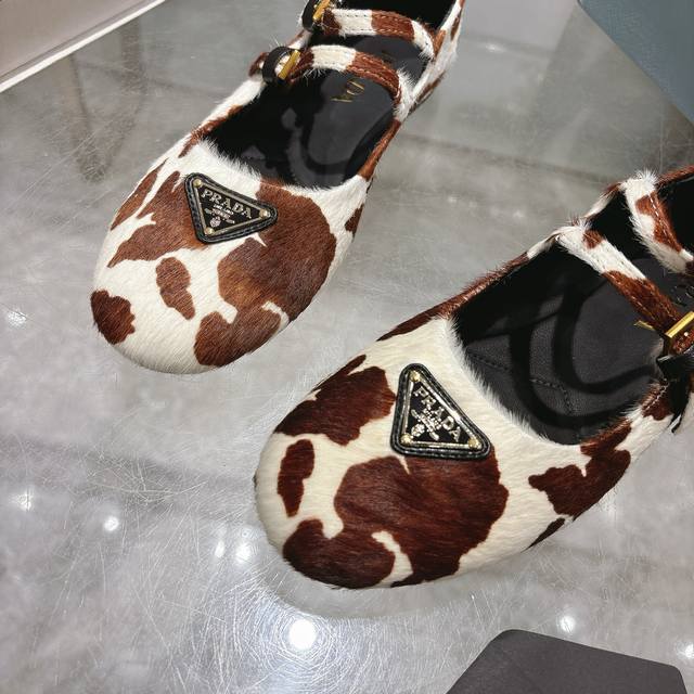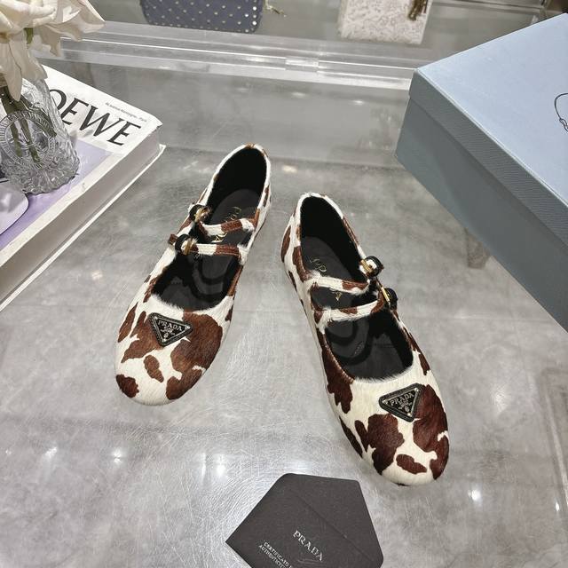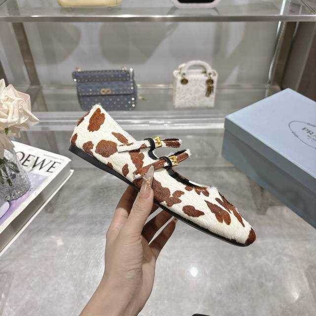 Prada's 2025 Spring/Summer Mary Jane ballet flats are here! Soft and comfortable, recommended by major bloggers on Xiaohongshu, perfect for a preppy look and commuting. 1-1 Round toe with gold triangular buckle. Factory price. Material: Horsehair leopard print, sheepskin lining. Sizes: 35-40, 41. Custom orders are non-refundable.