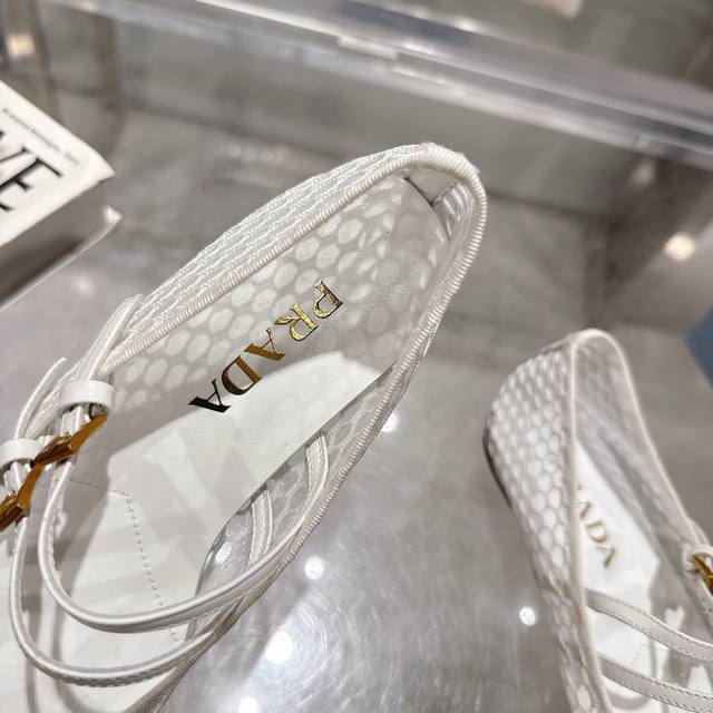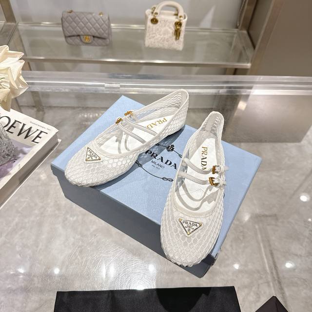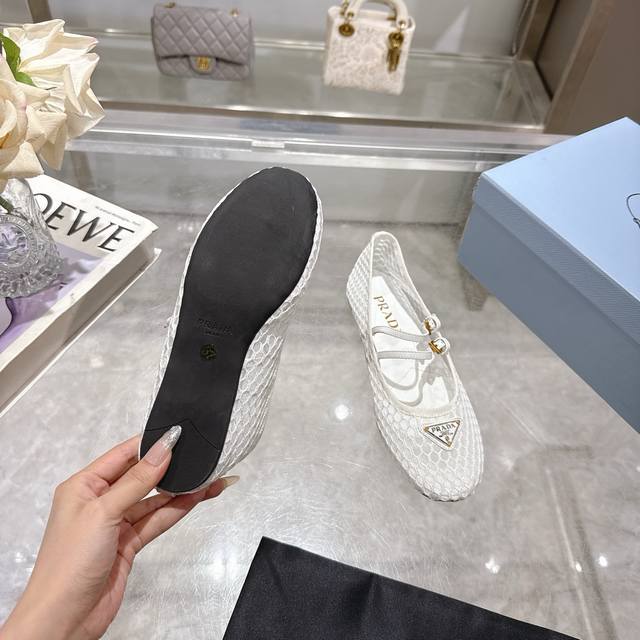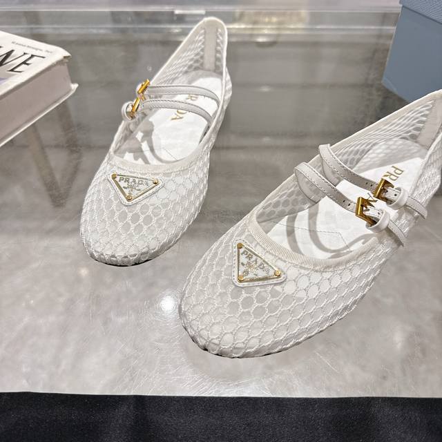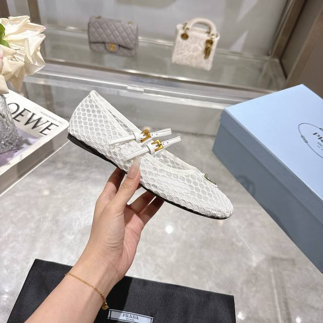 Prada's 2025 Spring/Summer Mary Jane ballet flats are here! Soft and comfortable, recommended by major bloggers on Xiaohongshu, perfect for a preppy look and commuting. 1-1 round toe with gold triangular buckle. Factory price. Material: breathable mesh, sheepskin lining. Sizes: 35-40, 41. Custom orders are non-refundable.