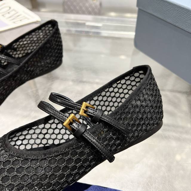 Prada's 2025 Spring/Summer Mary Jane ballet flats are here! Soft and comfortable, recommended by numerous bloggers on Xiaohongshu, perfect for a preppy, work-appropriate look. 1-1 Round toe with gold triangular buckle. Factory price. Material: Breathable mesh, sheepskin lining. Sizes: 35-40, 41. Custom orders are non-refundable.
