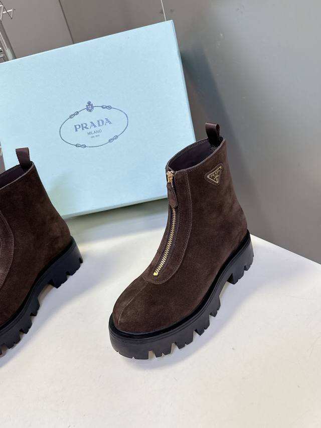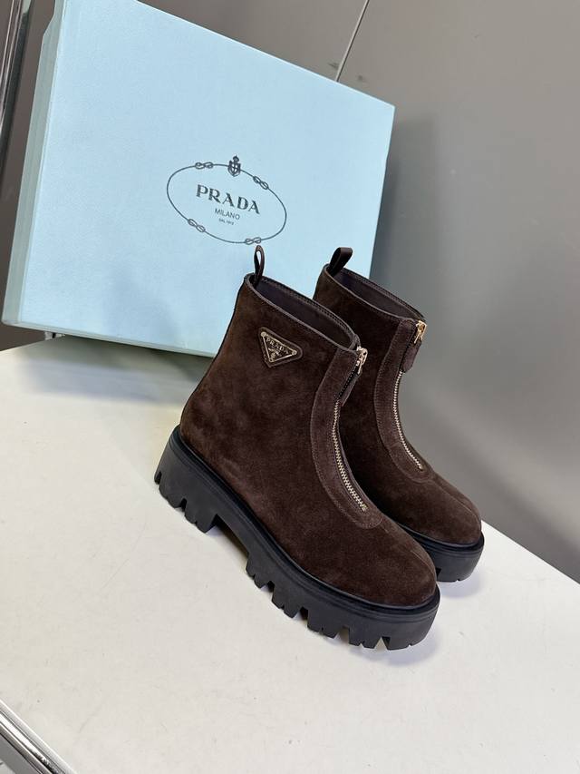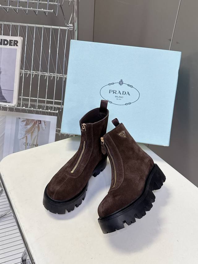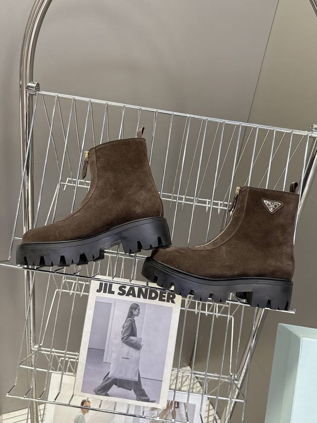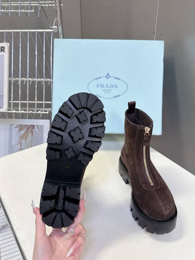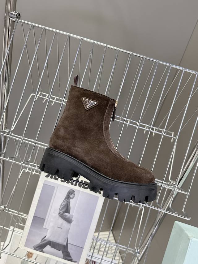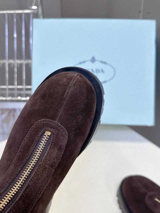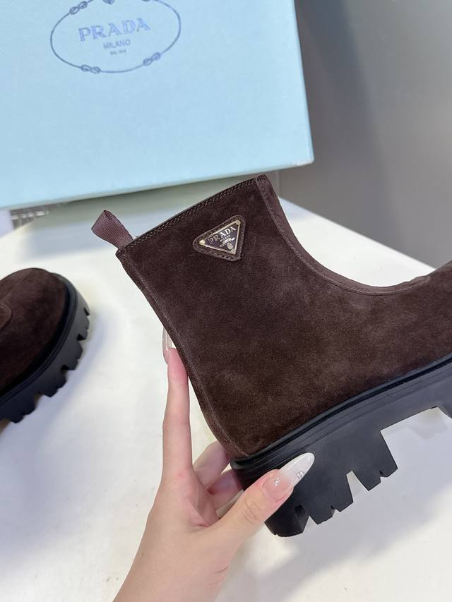 prada's latest autumn and winter triangle-label slip-on boots for women. Many celebrities and influencers are recommending this collection, which is not available in winter. It is definitely this year's hot item. The simple upper design is very beautiful, and the brand's recognizable triangle logo is embellished with details, which makes the shoes look elegant and slim. The outsole height is just right, 5cm, which instantly increases your height. It is a real height-enhancing tool. The entire series uses a variety of imported materials: brushed waxed calfskin, high-mercerized suede lining, water-dyed cowhide lining, original combination rubber foam outsole, lightweight and comfortable Sizes: 35-41, 40, 41. Made to order, no returns or exchanges.
