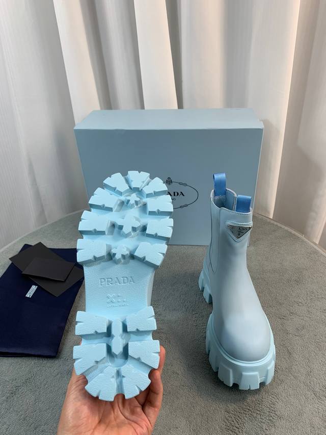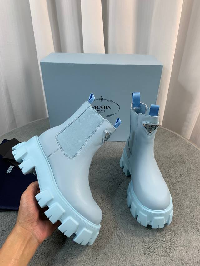 / Prada's latest Fall/Winter ankle boots. Upper: Imported calfskin. Lining: Import
