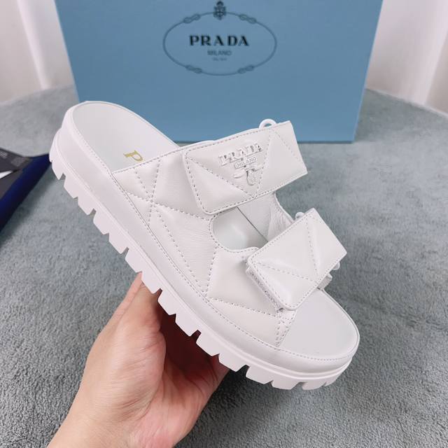 Prada's latest model. Upper: Imported mixed sheepskin. Lining: Imported water-dyed eco-friendly sheepskin. Sole: 2cm rubber embossed sole. Size: 35-41.