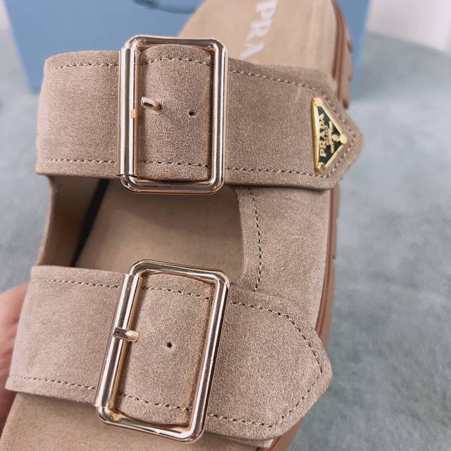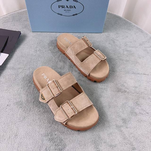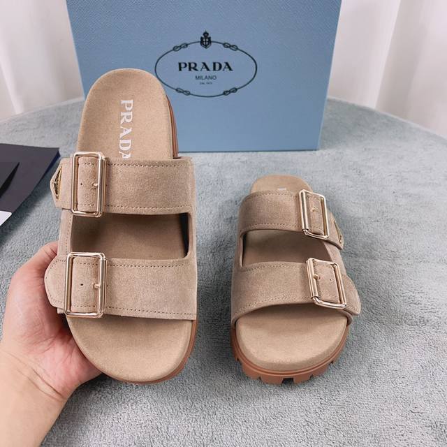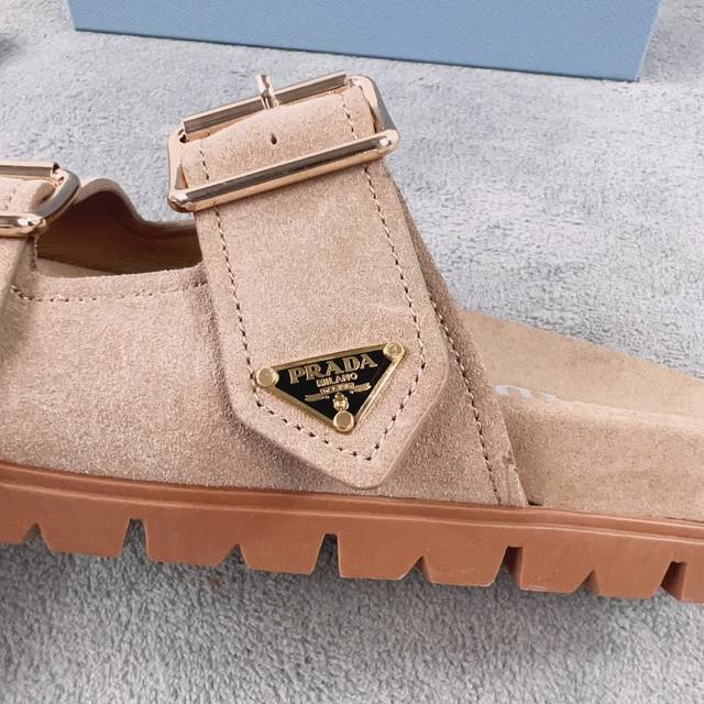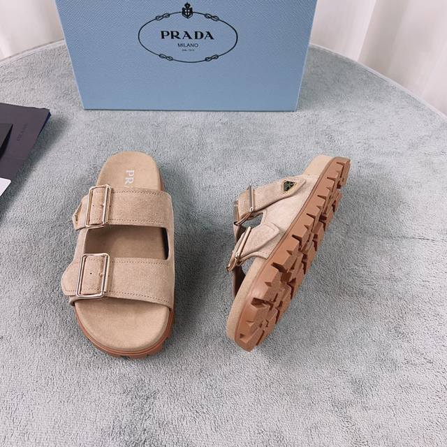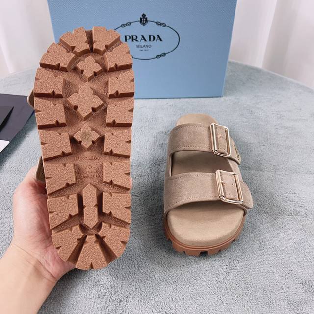 Prada's latest style. Upper: Imported cowhide and suede. Lining: Imported water-dyed eco-friendly sheepskin. Sole: 2cm rubber embossed sole. Size: 35-41.