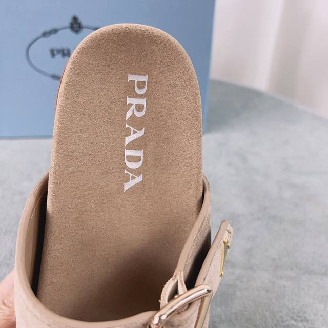 Top-Quality Prada Ss25 Birkenstock-Style Shoes With Suede And Raffia Weaving. Pr