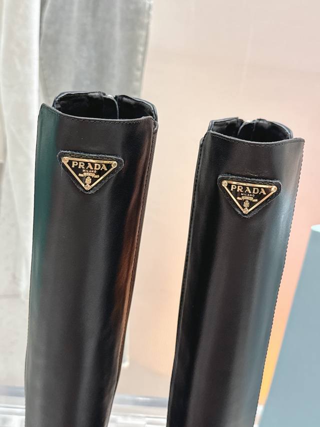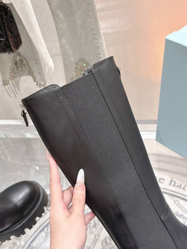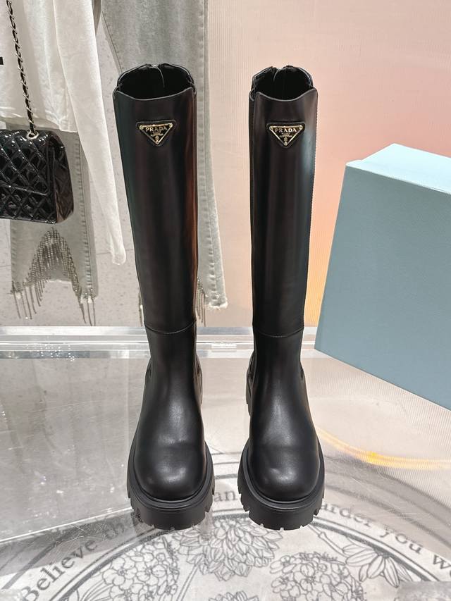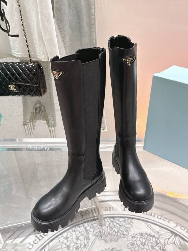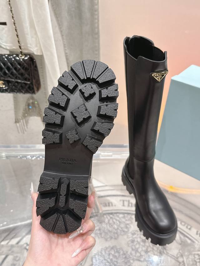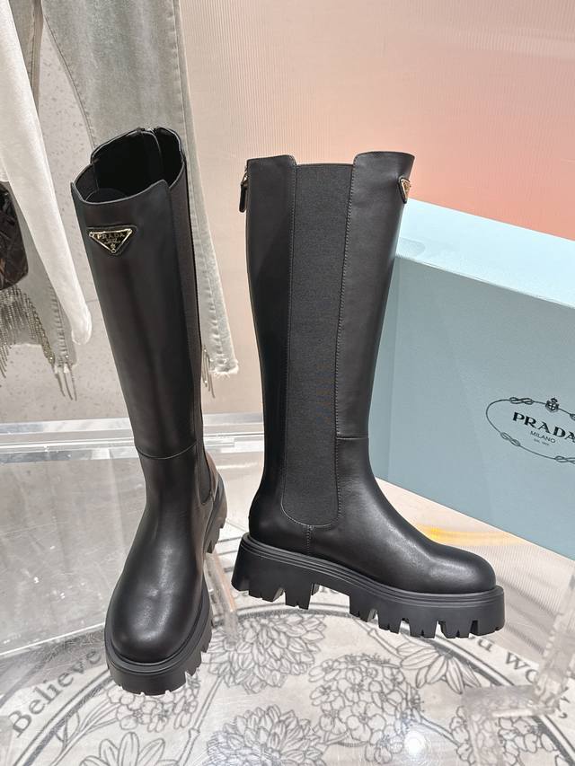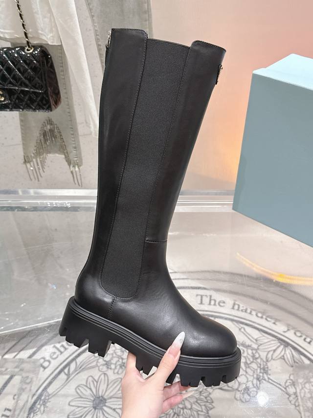Prada's new autumn/winter collection, the triangle-shaped Chelsea platform boots. Made from custom-made cowhide leather, with sheepskin lining and Italian-imported TPU outsole. Sizes: 35-40 [40, 41 custom sizes available]