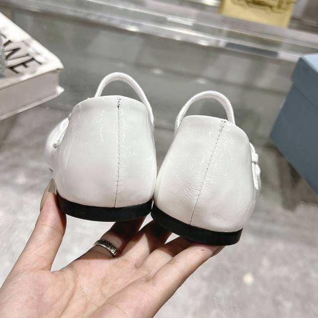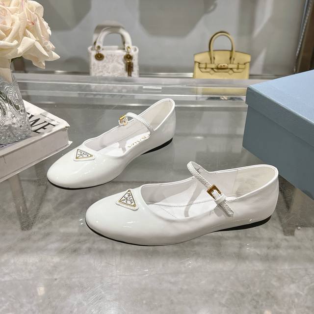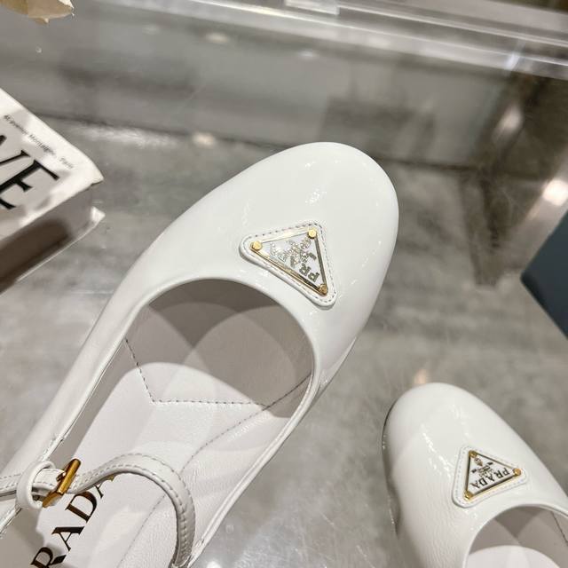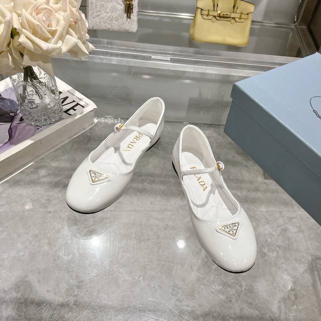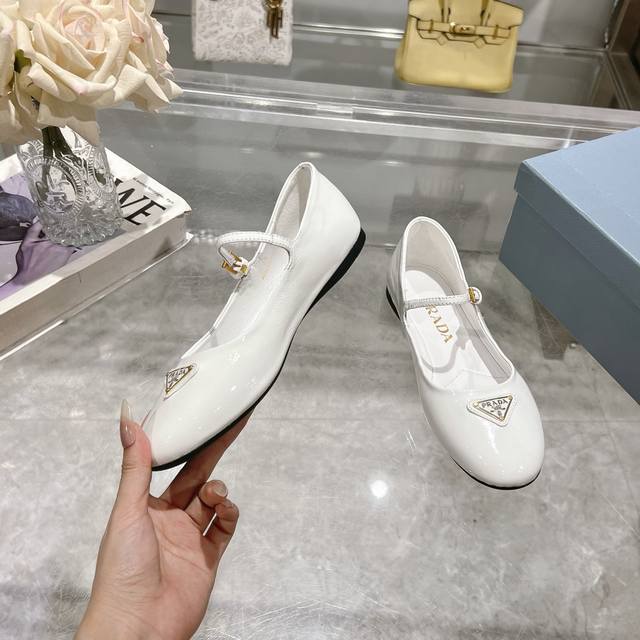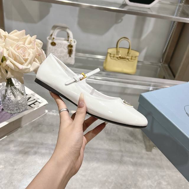 Prada's Spring/Summer new arrival, Mary Jane ballet flats, are here! Soft and comfortable, recommended by major bloggers on Xiaohongshu, perfect for a preppy, work-appropriate look. 1-1 round toe with gold triangular buckle. Factory price. Materials: patent leather, lambskin, silk. Lambskin lining. Sizes: 35-40, 41. Custom orders are non-refundable.