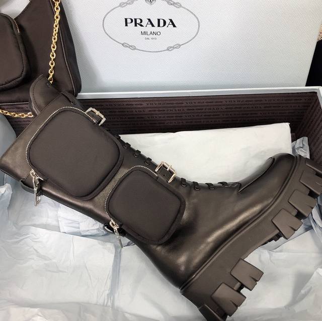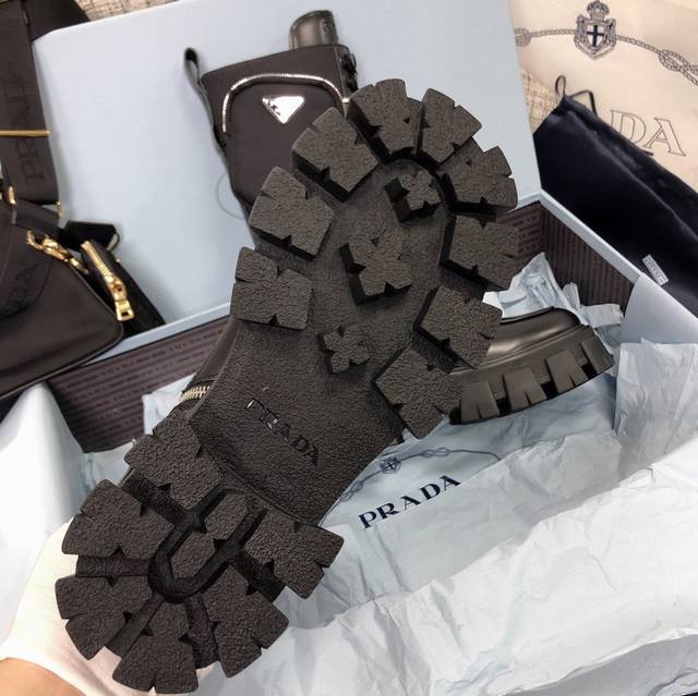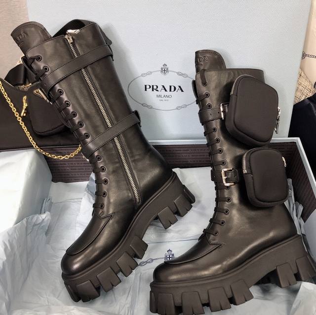 Prada's top-tier celebrity-style boots are here, comfortable and elegant. 1:1 replica of the original counter-made mold. Non-slip and wear-resistant imported TPU tin mold vacuum outsole. Tank-molded thick sole. Fabric: imported anti-cracking patent leather, matte cowhide lining. Imported mixed sheepskin lining. Sheepskin pad. Heel height: 6cm, about 14 inches. Original counter packaging. Women's sizes: 35-41. Orderable without label