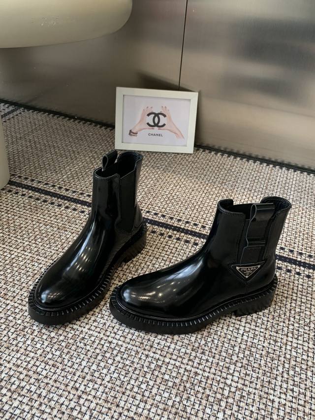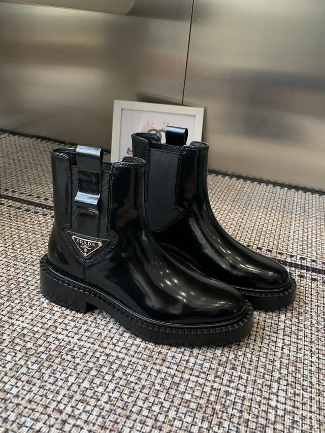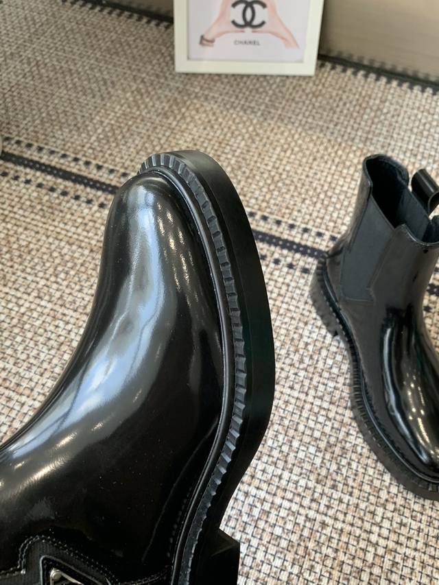 Prada's top-tier motorcycle boots are here! They look amazing on, are comfortable and elegant, and are a 1:1 replica of the original from the boutique. Made with top-grain cowhide leather, imported anti-cracking edge beads, and an imported mixed sheepskin lining. Original packaging. A great product, need I say more? For those in the know. Sizes: 35-41. Size 41 is custom-made and non-refundable.