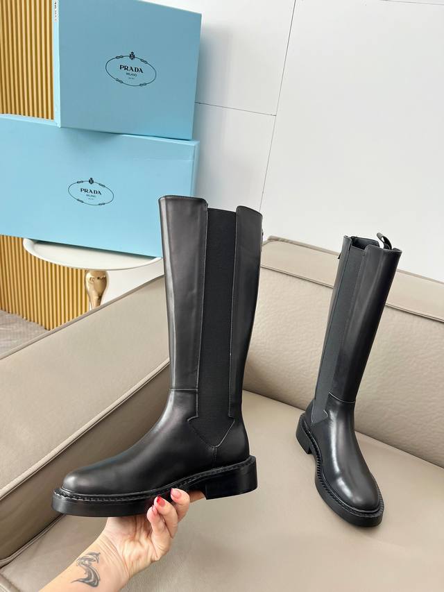 Prada's top-tier motorcycle boots are here! They look amazing on, are comfortable and elegant, and are a 1:1 replica of the original from the boutique. Made with top-grain cowhide leather, imported anti-cracking edge beads, and an imported mixed sheepskin lining. Original packaging. A great product, need I say more? For those in the know. Sizes: 35-41. Size 41 is custom-made and non-refundable.