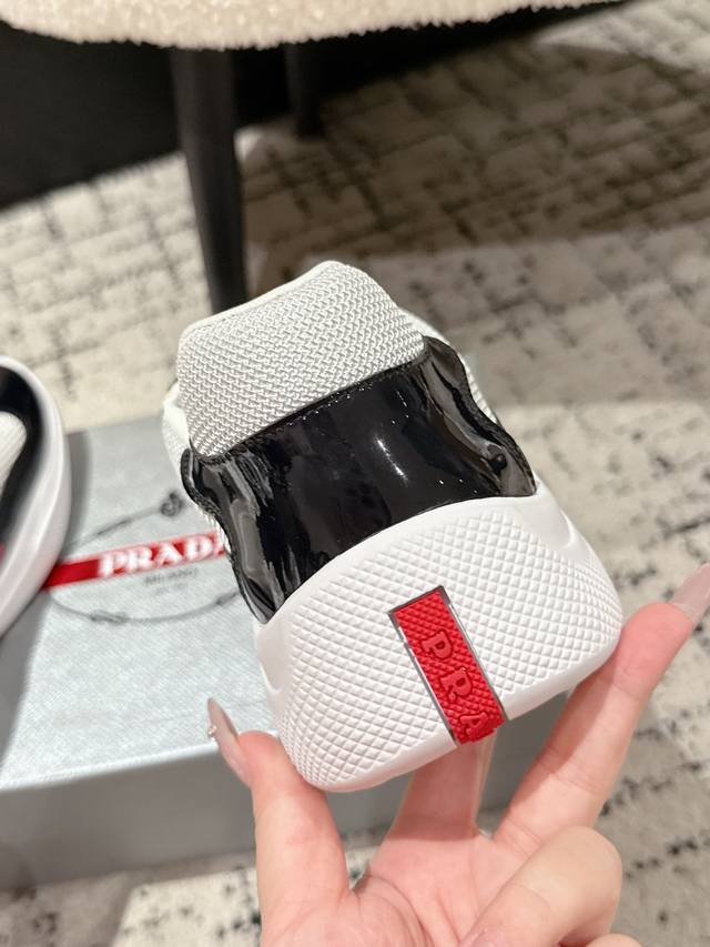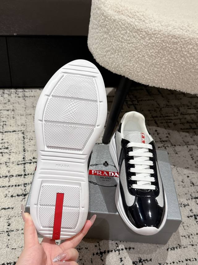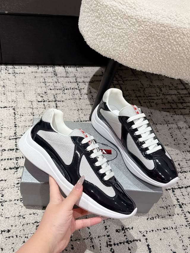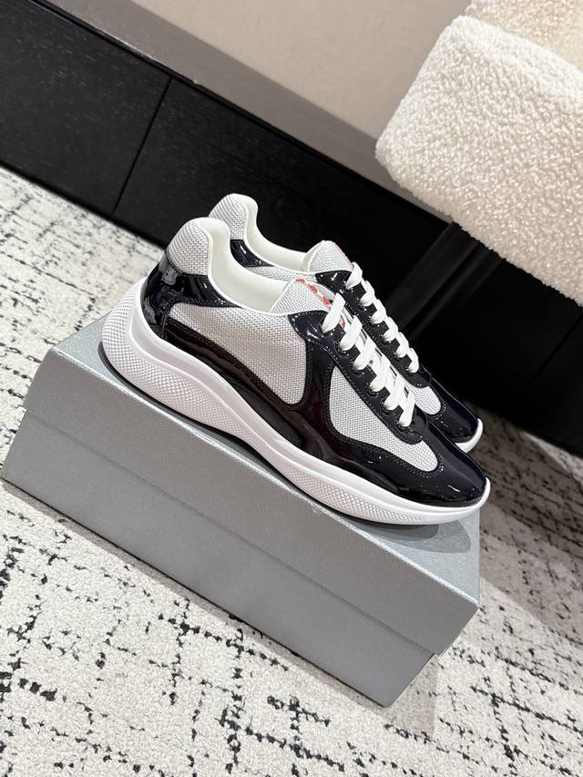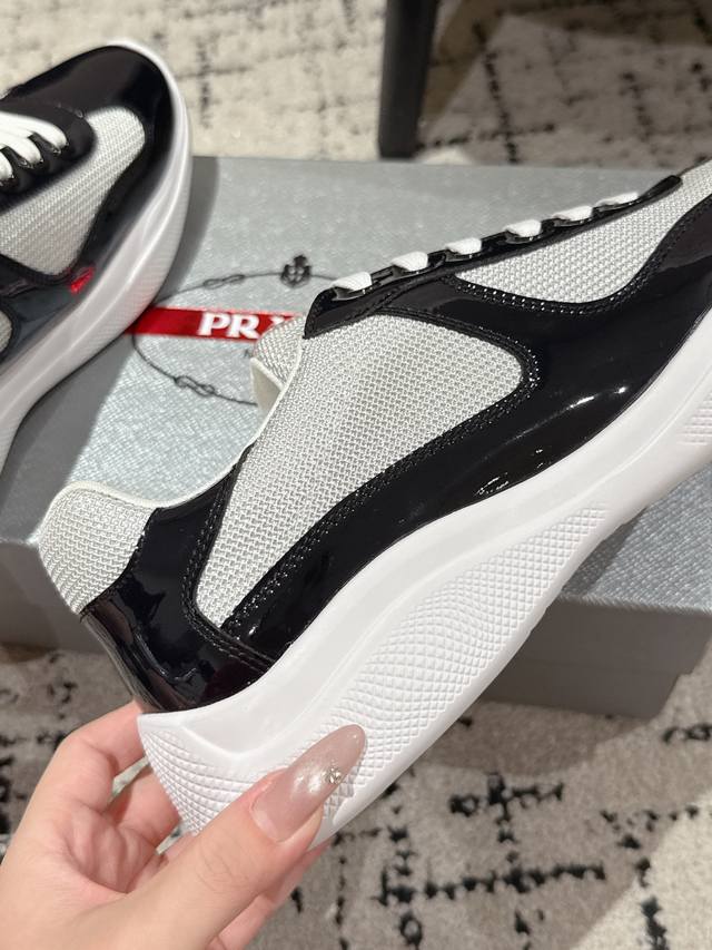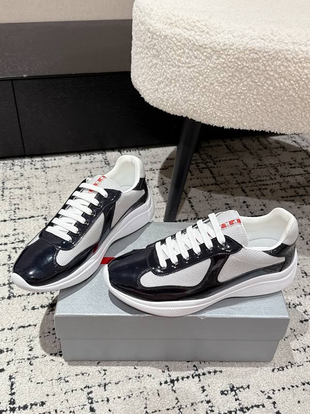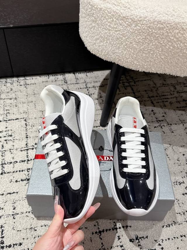 Prada 25 America's Cup Series Patent Leather Mesh Casual Sneakers