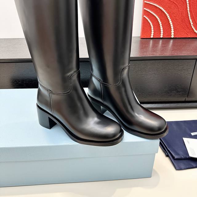 Purchased on behalf of Prada Fw block-heeled long boots full leather, stylish v