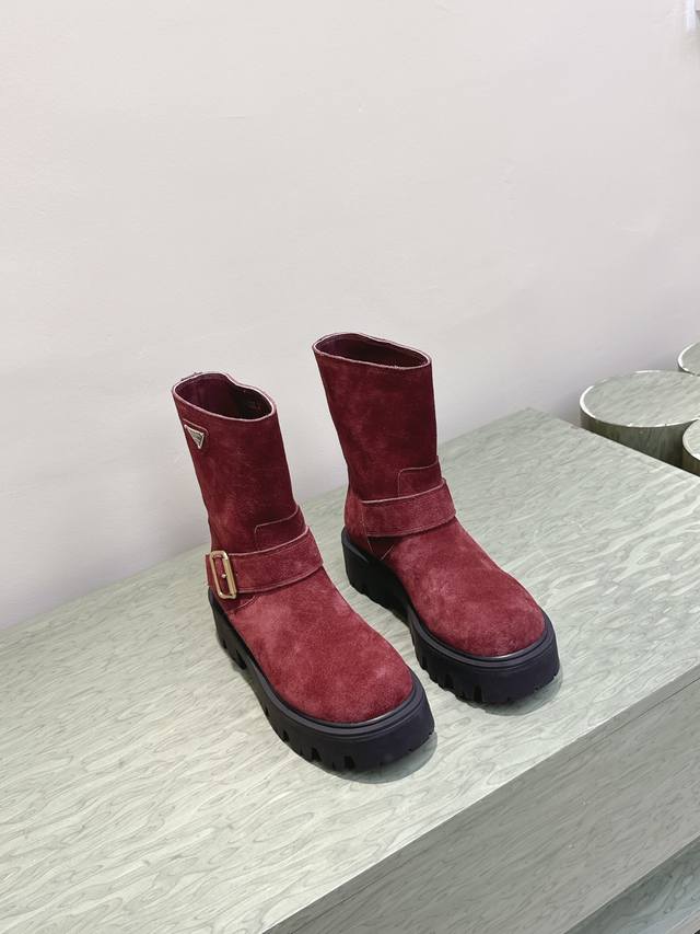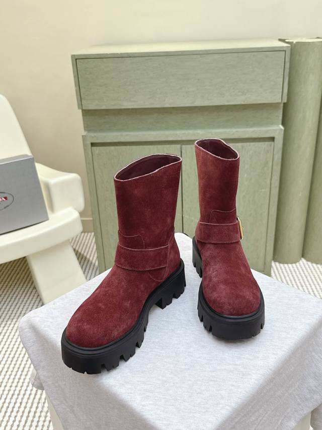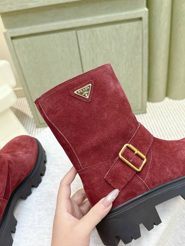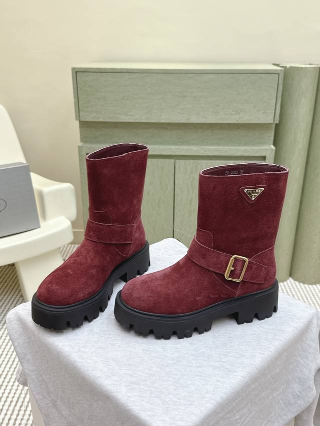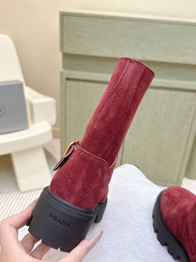 Purchasing agent level | D0105 Prada 25Ss classic triangle logo slip-on boots for women. A collection you can't find in winter, this is definitely the hottest item this year! They're so pretty! Prada boots are truly amazing! They're so stylish and slim, and they're the perfect balance of style and style. Upper: Cowhide leather. Lining: Cowhide leather. Outsole: TPU outsole. Sizes: 35-40. 40 and 41 are made to order and are not returnable or exchangeable.