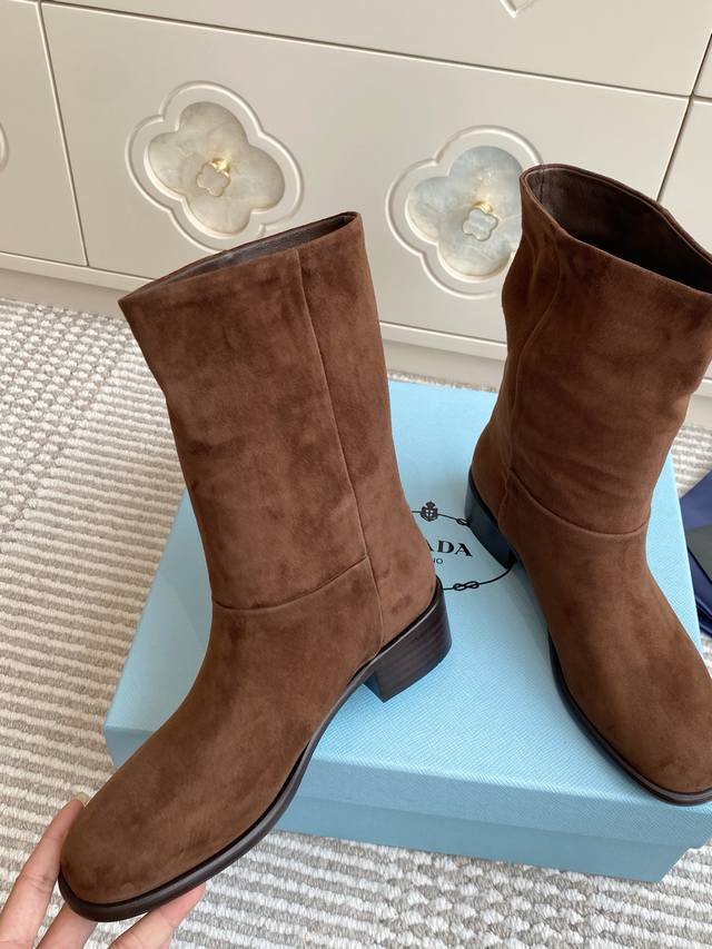 Purchasing-level prad* Prada 25Ss new autumn and winter suede ankle boots