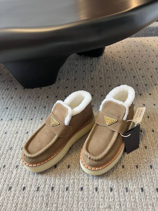 Retail-grade Prad*A 25Fw Prad Thick-Soled Casual Wool Deep-Mouth Ankle Boots DDD This sneaker continues the timeless silhouette, a new classic item crafted from suede for enhanced style and a lightweight design. DDD Featuring a triangular buckle logo and a 5cm thick sole, suitable for all seasons, it can be paired with various casual styles. In an era saturated with eye-catching styles, it's the perfect companion to capture hearts with its subtle details. DDD Material: Two-tone distressed suede DDD Lining: Imported lamb wool DDD Outsole: TPU non-slip outsole + genuine leather welt DDD Sole thickness: 5cm DDD Sizes: 35, 41, 40, 41 Custom orders are non-refundable and non-exchangeable DDD