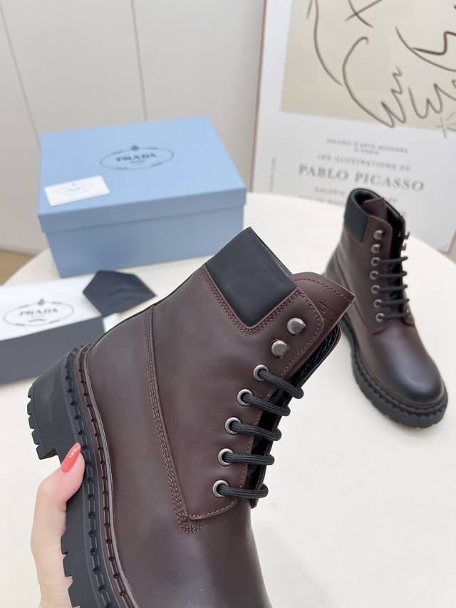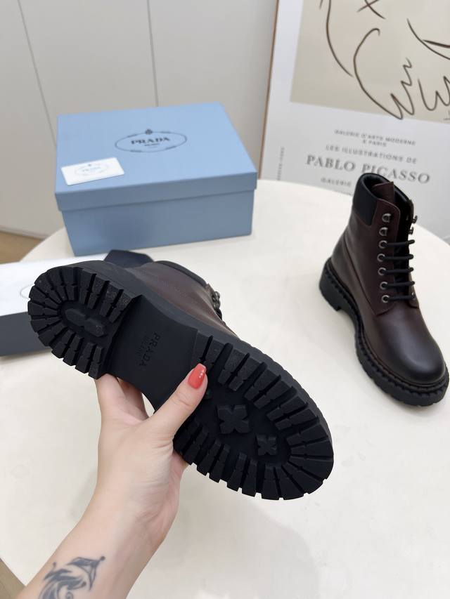 Sss presents the Prada Ankle Boots series. Prada's early autumn/winter runway and influencer-endorsed style, "Dreaming of a City That Never Sleeps," is now available for important occasions. The fresh style with a touch of luxury is perfect for wearing on the feet. Elegant and sophisticated, these shoes are crystal clear. All accessories and materials are exclusively 1:1 customized, achieving zero deviation from the original. The entire series combines exciting and unexpected elements, allowing you to experience the versatile style of the Prada girl. Imported split-edge fabric, denim lining. Sizes 35-41