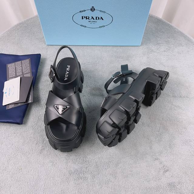 Super Hot Prada Spring/Summer Slip-on Roman Woven Ultralight Platform Rubber Sandals E64. Retro, stylish, and avant-garde slip-on design. The 55mm platform sole paired with a rubber upper makes the shoes lightweight and comfortable. Vibrant colors cater to various styles and fashionistas! The iconic metal triangle logo combined with the vintage beach sandal design ensures every element is on point! Sizes 35-40.