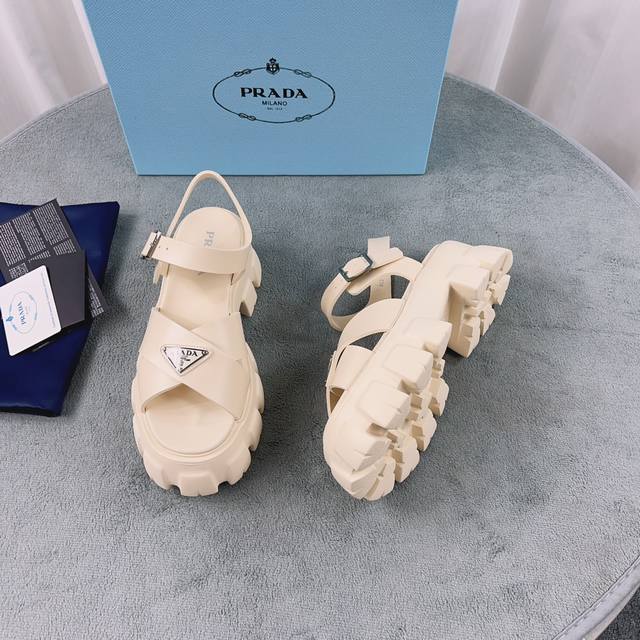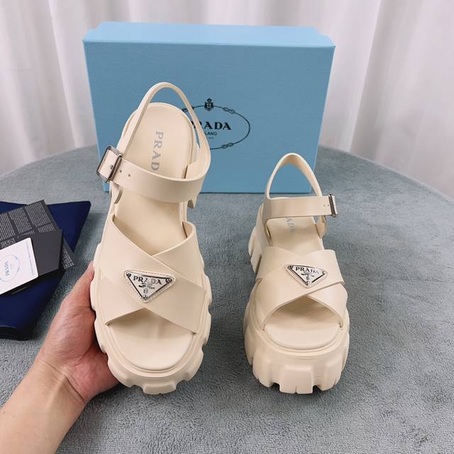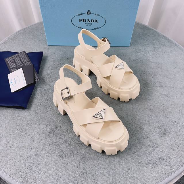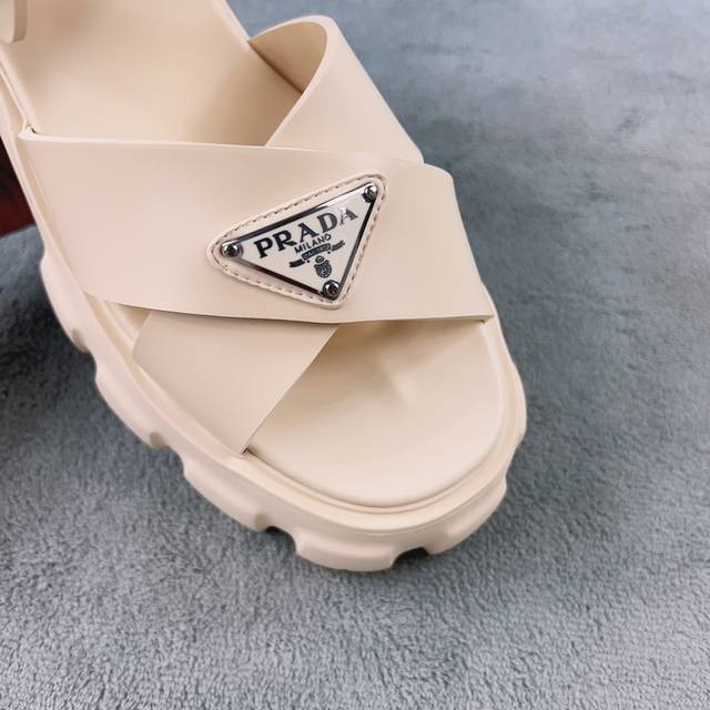 Super Hot Prada Spring/Summer Slip-on Roman Woven Ultralight Platform Rubber Sandals E64. Retro, stylish, and avant-garde slip-on design. The 55mm platform sole paired with a rubber upper makes the shoes lightweight and comfortable. Vibrant colors cater to various styles and fashionistas! The iconic metal triangle logo combined with the vintage beach sandal design ensures every element is on point! Sizes 35-40.