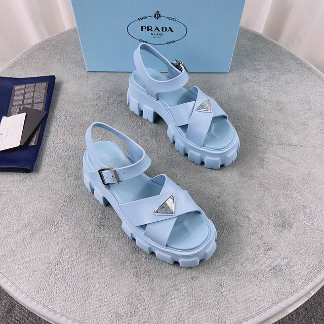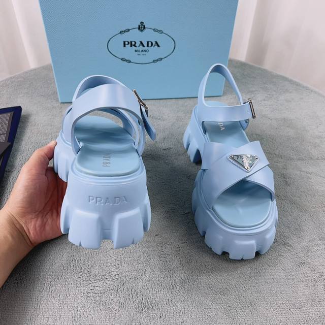 Super Hot Prada Spring/Summer Slip-on Roman Woven Ultralight Platform Rubber Sandals E64. Retro, stylish, and avant-garde slip-on design. The 55mm platform sole paired with a rubber upper makes the shoes lightweight and comfortable. Vibrant colors cater to various styles and fashionistas! The iconic metal triangle logo combined with the vintage beach sandal design ensures every element is on point! Sizes 35-40.