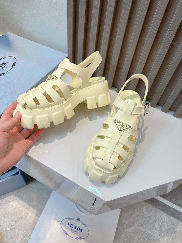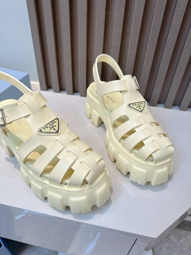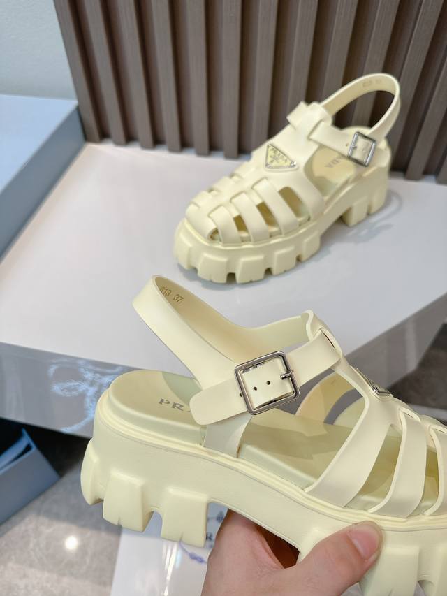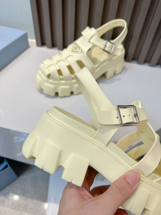 Super hot Prada's latest Spring/Summer serrated Roman woven platform rubber sand