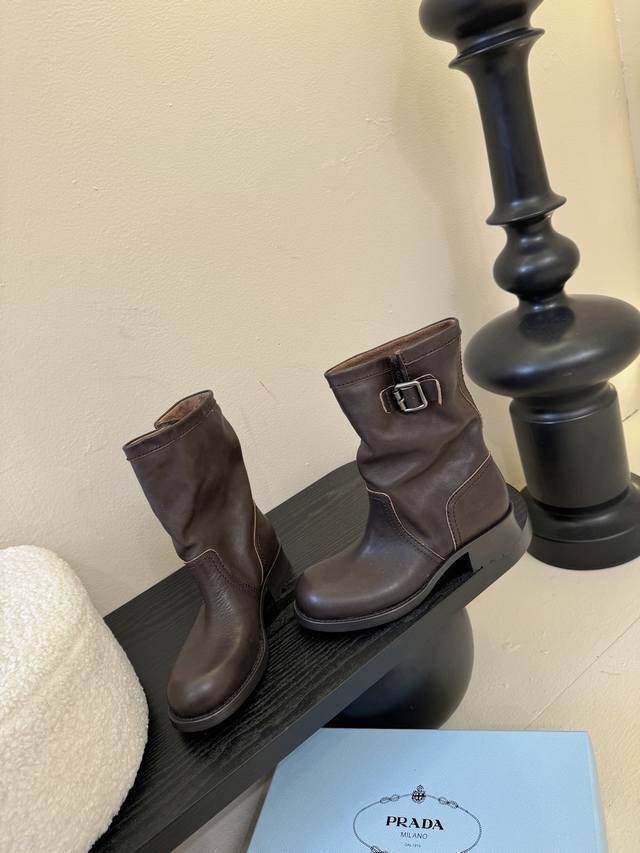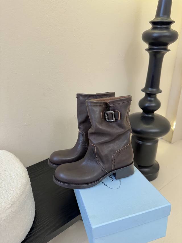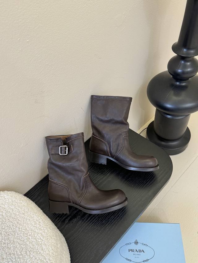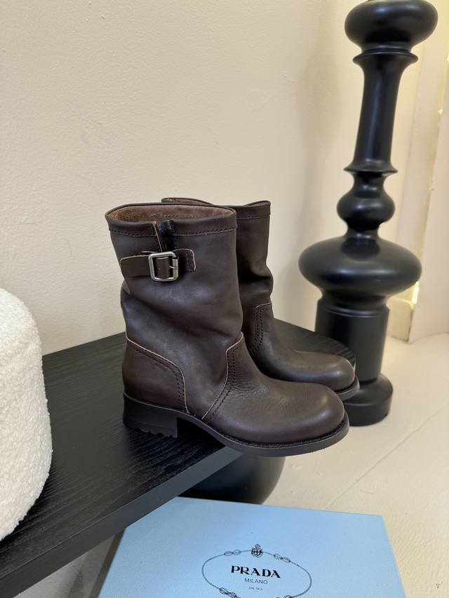 prad* Prada 25Ss autumn and winter thick-soled knight boots short boots