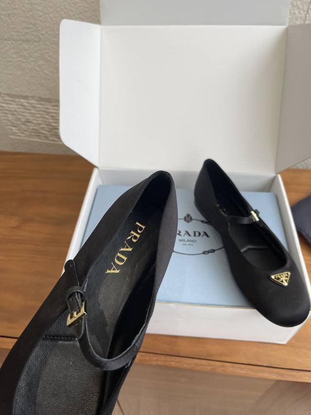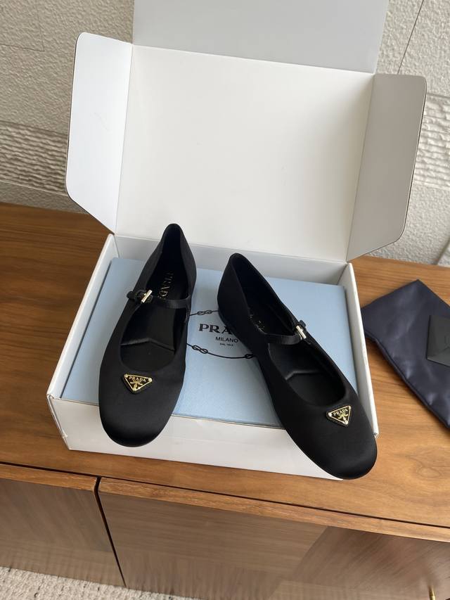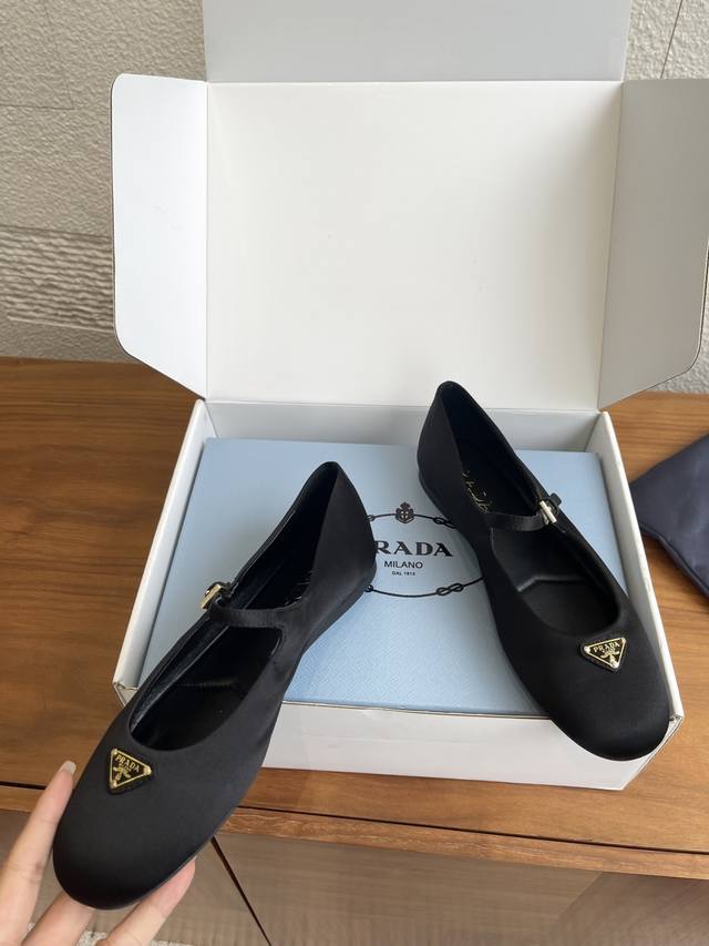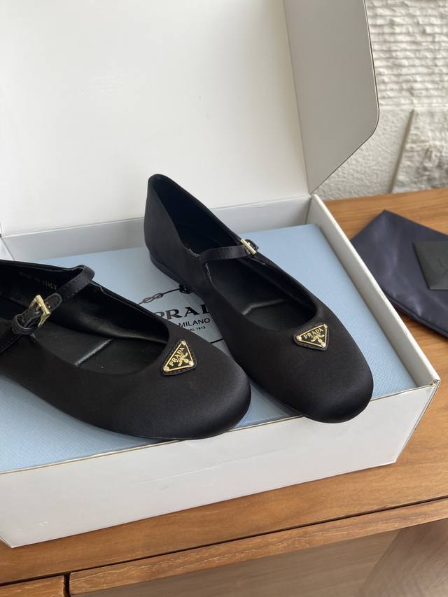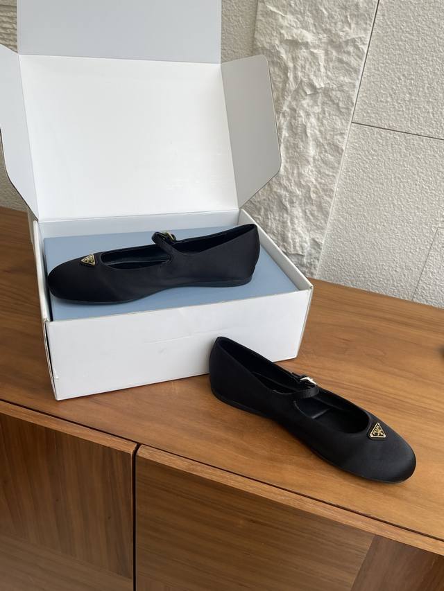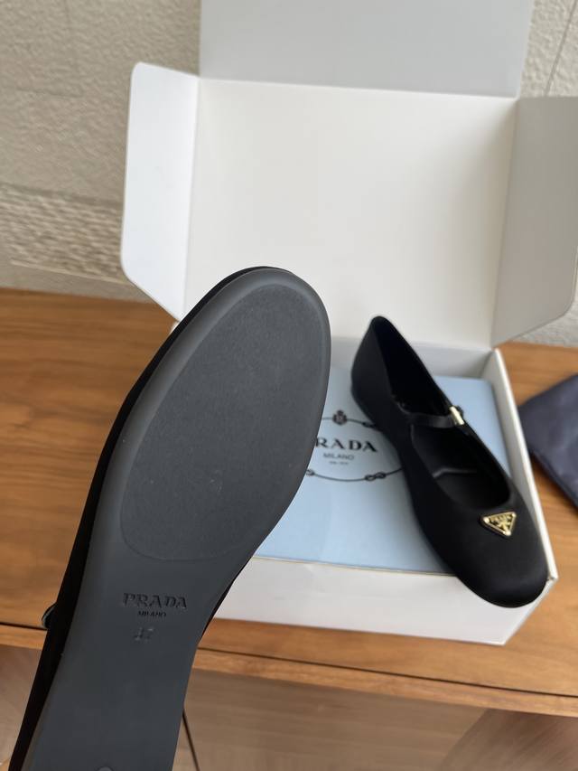 Top Version: Comes with a beautiful boutique box. Prada 25Ss Autumn/Winter New Round Toe Triangle Buckle Flat Mary Jane Ballet Flats. These satin ballet flats exude feminine and elegant charm. Classic lines and exquisite details define the round toe design, featuring a round toe, rubber sole, and an enamel triangular metal logo, highlighting classic lines and refined elegance. The flat sole ensures a light and comfortable feel, 100% comfortable on the feet. Material: Imported silk satin; Insole: Imported sheepskin; Outsole: Original molded rubber outsole; Size: 35-41 (40-41, custom orders are non-refundable).