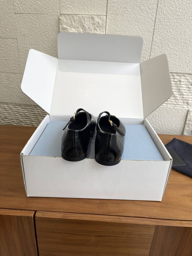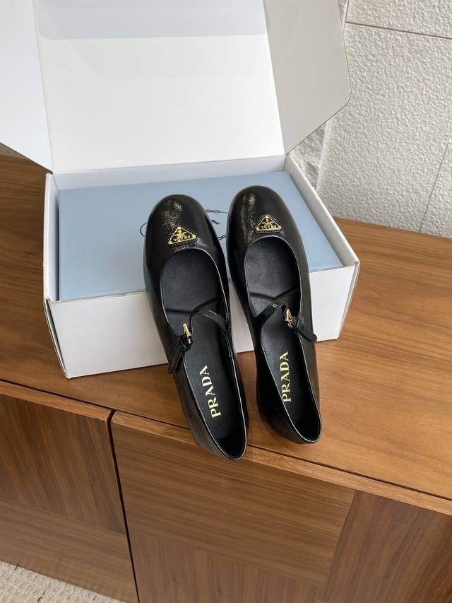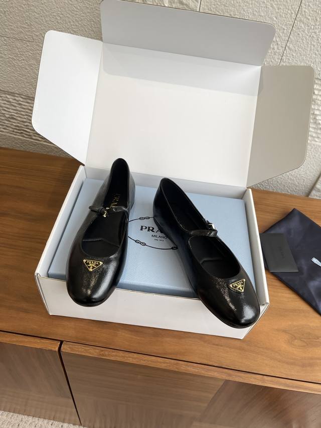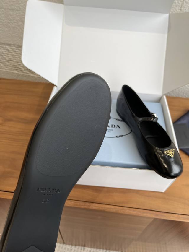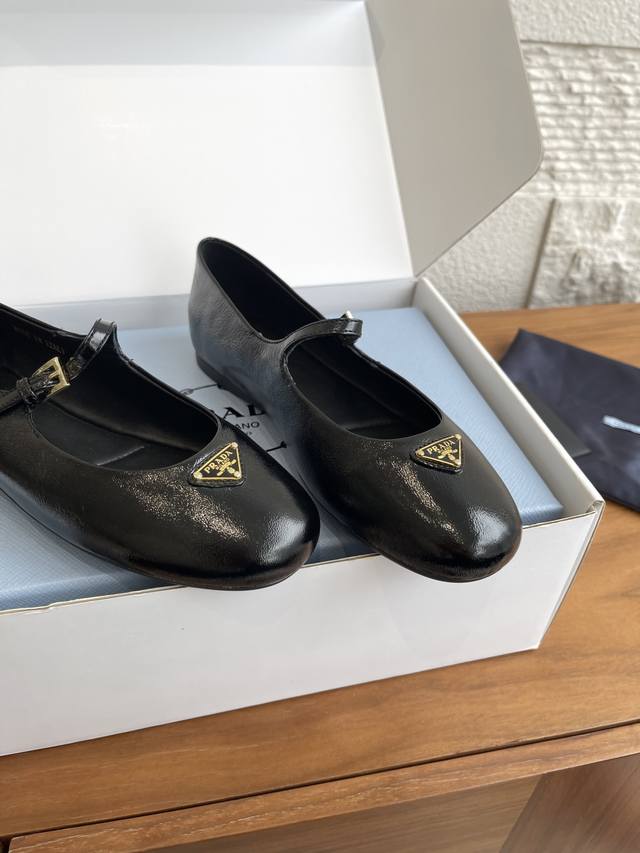 Top Version: Comes with exquisite boutique box. Prada 25Ss Autumn/Winter New Round Toe Triangle Buckle Flat Mary Jane Ballet Flats. These ballet flats feature a tapered silhouette, with Naplak patent leather adding a touch of sophistication and showcasing elegant and feminine charm. They feature a round toe design, a rubber sole, and an enamel triangular metal logo, highlighting classic lines and refined, elegant details. The flat sole ensures a light and comfortable feel, 100% comfortable on the feet. Material: Imported lambskin, imported patent leather. Lining: Imported lambskin. Outsole: Original molded rubber outsole. Size: 35-41, 40-41 (Custom orders are non-refundable).