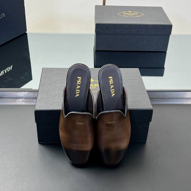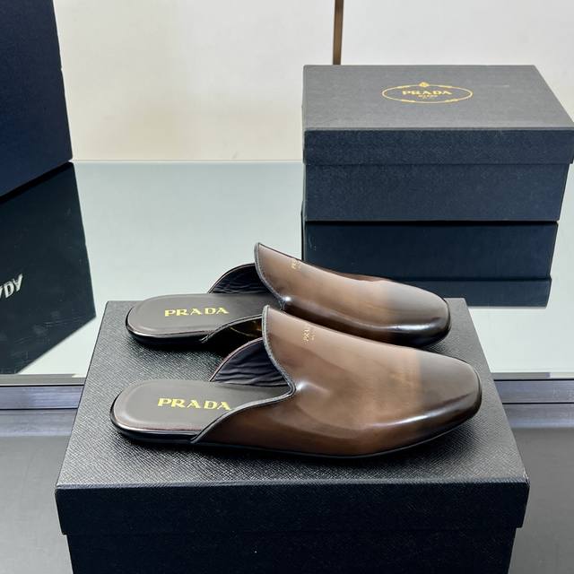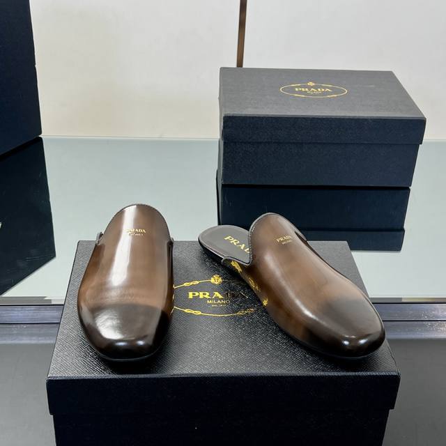 Prada 2025 latest fashion show men's boutique slippers, mules and half slippers