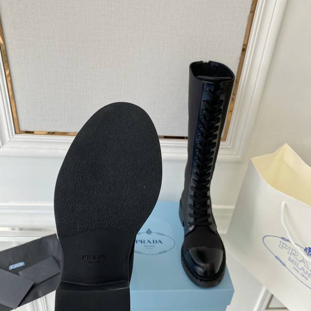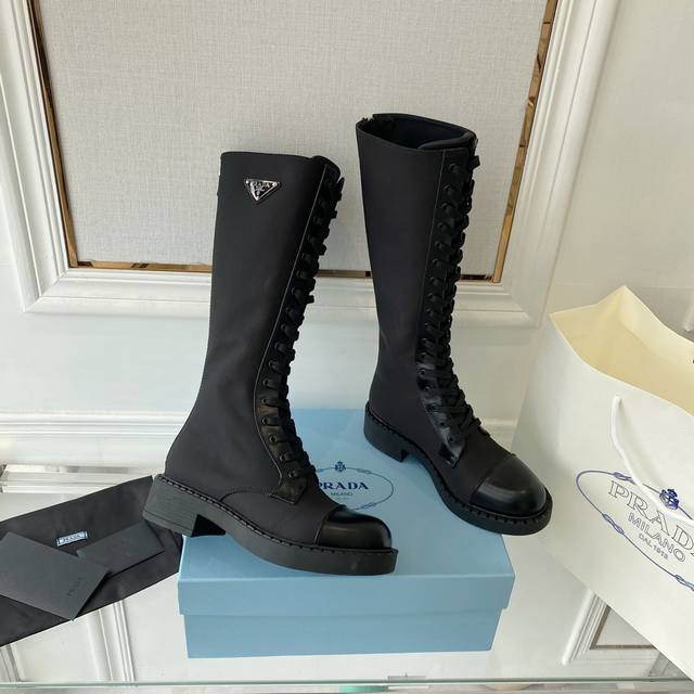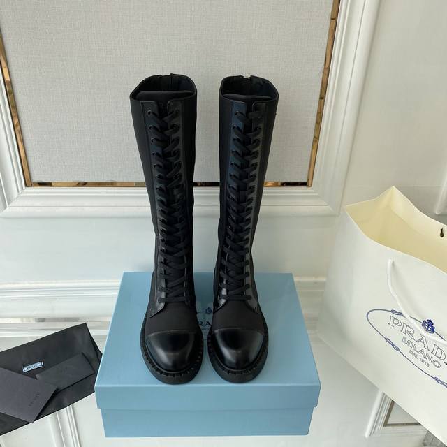 Top-tier 2025 Sss heavy-duty release of Prada's latest long boots. Prada's early spring runway and online show featured a popular style, "Dreaming of the City That Never Sleeps." Prada's boots are perfect for any occasion, offering a fresh and elegant look with a touch of sophistication. They are incredibly flattering and easy to wear, exuding elegance and grace. The materials and accessories are all unique and meticulously crafted, ensuring a perfect replica. The entire collection is filled with exciting and unexpected elements, showcasing different materials and textures with a strong artistic flair, allowing you to experience the ever-changing style of the Prada girl. Features: 1. Matte upper with open hem; 2. Lining: Imported sheepskin lining; 3. Outsole: Original Italian color; 4. Original insole. Suitable for women aged 35M-40M.