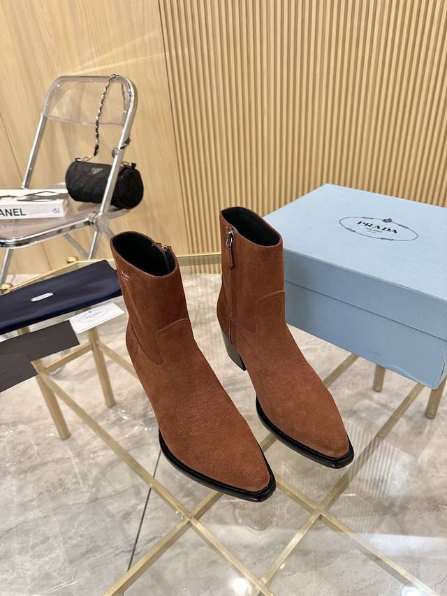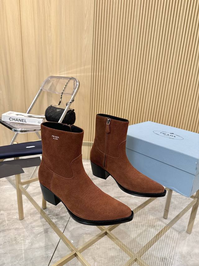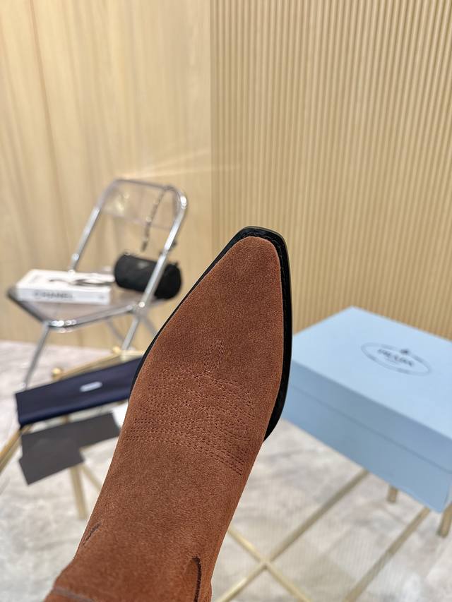 Top-tier luxury version of the classic Prada pointed-toe boots. Prada is perfect for important occasions, offering a fresh yet subtly sophisticated look. They look absolutely stunning on the feet, slimming the legs and perfectly capturing the essence of elegance. Pairing these boots with other items creates a refined and elegant style. The shoes are crystal clear, with all accessories and materials exclusively custom-made to a 1:1 replica, achieving zero deviation from the original. The entire collection combines exciting and unexpected elements, allowing you to experience the ever-changing style of the Prada girl. Sizes: 35-40, 41, 42 (custom made).