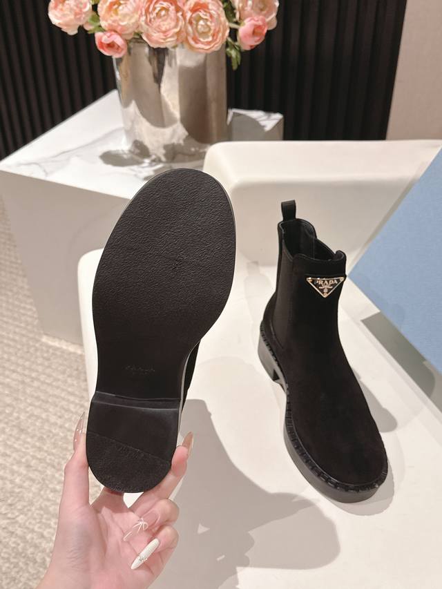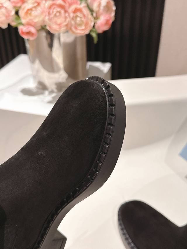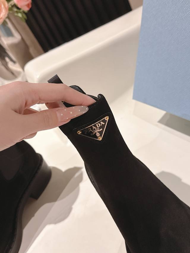 Top-tier Prada version, 1:1 replica, looks perfect on, makes legs look slimmer and exudes elegance. Material: Imported split-edge calfskin. Lining: Ultra-soft cowhide. Outsole: Ultra-lightweight rubber foam outsole. Sizes 35-40.