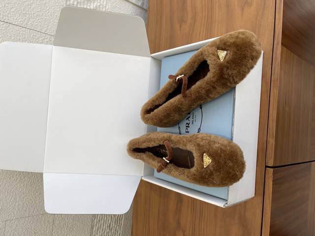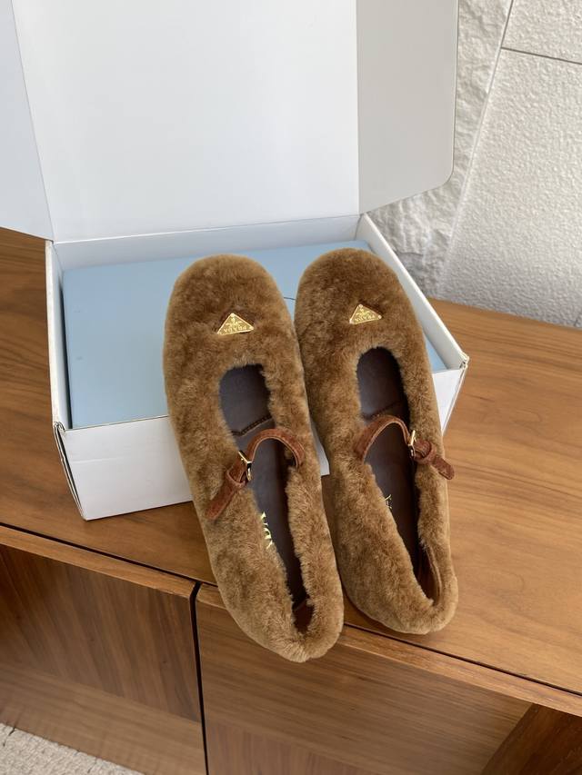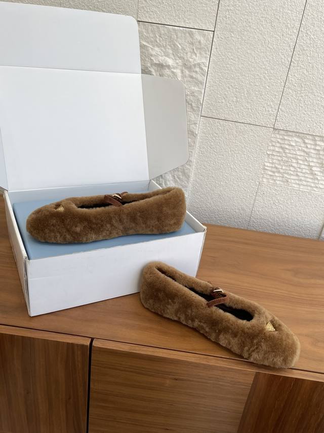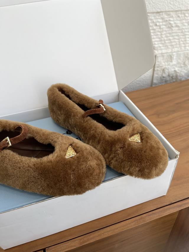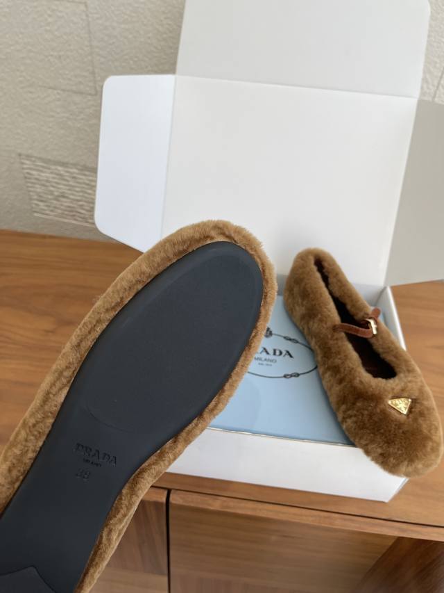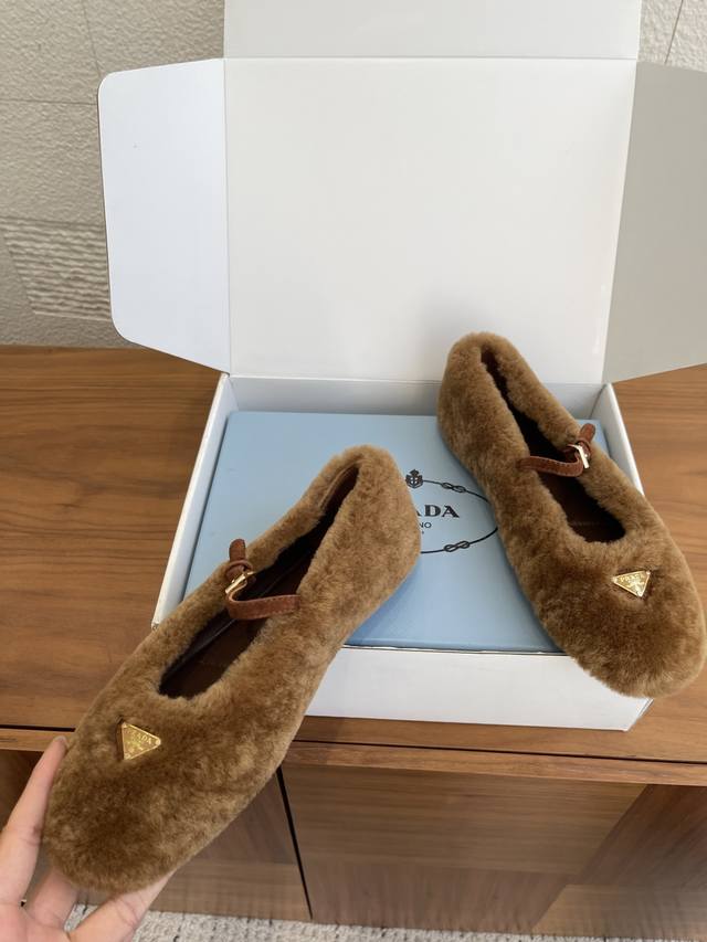 Top-tier version: Comes with a beautiful boutique box. Prada 25Ss Autumn/Winter New Wool Triangle Buckle Mary Jane Ballet Flats. This Prada ballet flat redefines the classic style of feminine footwear with its soft silhouette and wintery texture. Adorned with an enamel triangular metal logo. Classic lines and exquisite details define the round-toe design, featuring a round toe and rubber sole, highlighting classic lines and refined elegance. Material: Imported Australian wool. Insole: Imported sheepskin. Outsole: Original molded rubber outsole. Size: 35-41. Custom orders are non-refundable and non-exchangeable.