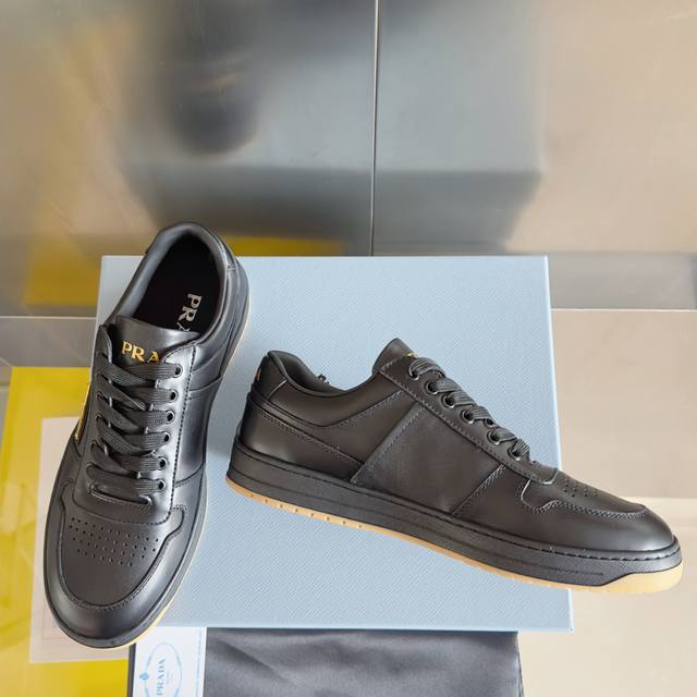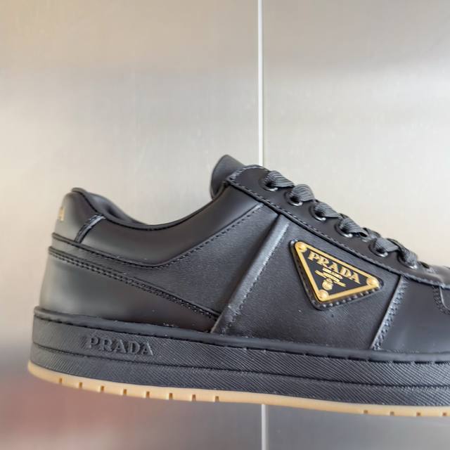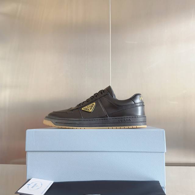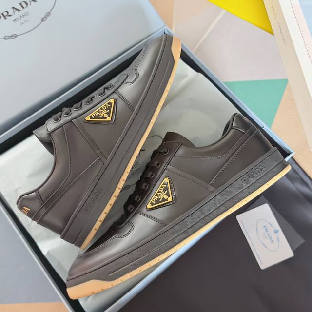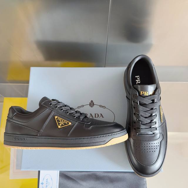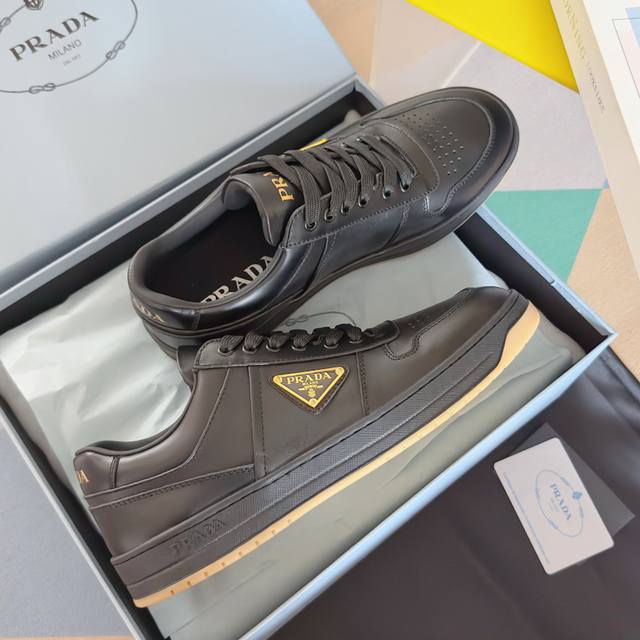 Top-tier version: Couple's style Prada Downtown series couple's style triangle logo casual sneakers. These Nappa leather sneakers feature a contemporary sporty design with clean lines and a lightweight rubber sole. The Prada logo, adorned with the iconic enamel metal triangle, is interpreted from different angles, showcasing a unique classic charm. Comes with exquisite boutique packaging. Material: Original custom imported top-grain cowhide. Lining: Imported soft sheepskin. Sole: Original molded non-slip rubber material. Sole thickness: 3.5cm. Size: Women's 35-40, Men's 39-45.