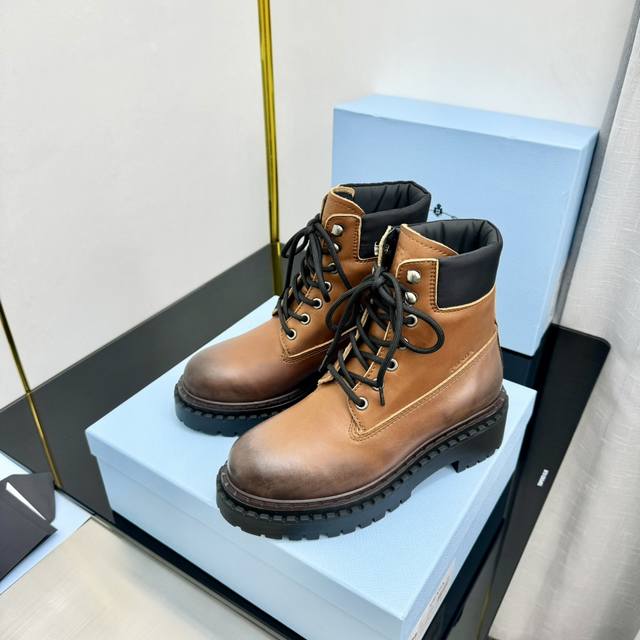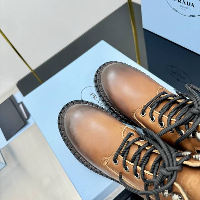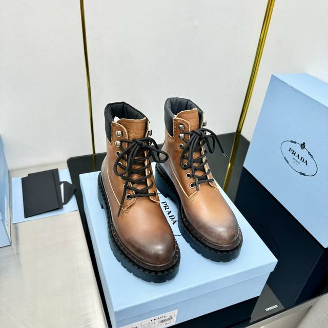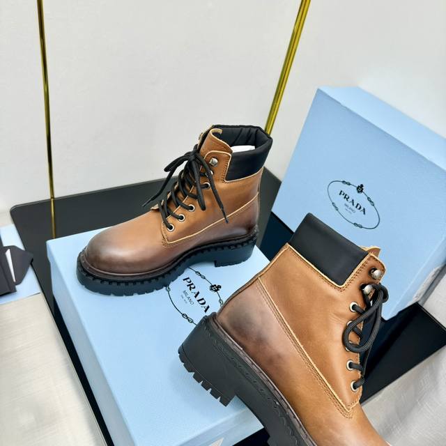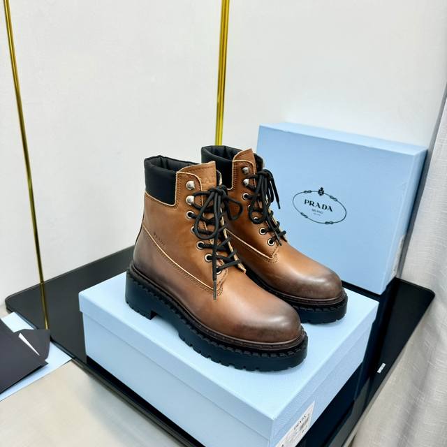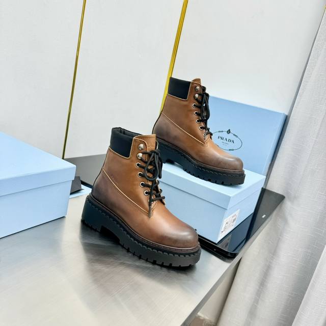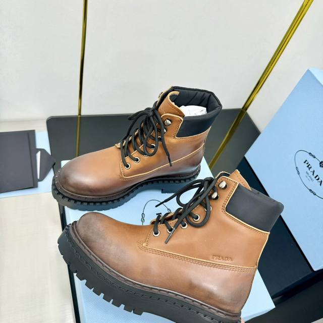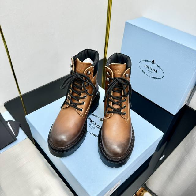 Top-tier version of Liu Wen and Yang Mi's same style height-increasing Chelsea ankle boots. Prada Fall/Winter new runway style brogue platform ankle boots. These look amazing on! They also elongate the legs. Vintage hand-rubbed finish, exuding high-end elegance. Material: Original custom cowhide. Lining: Sheepskin lining. Outsole: Original molded sole. Height: Approximately 4.5cm at the back. Size: 35-39 [40 pieces made to order, no returns or exchanges].