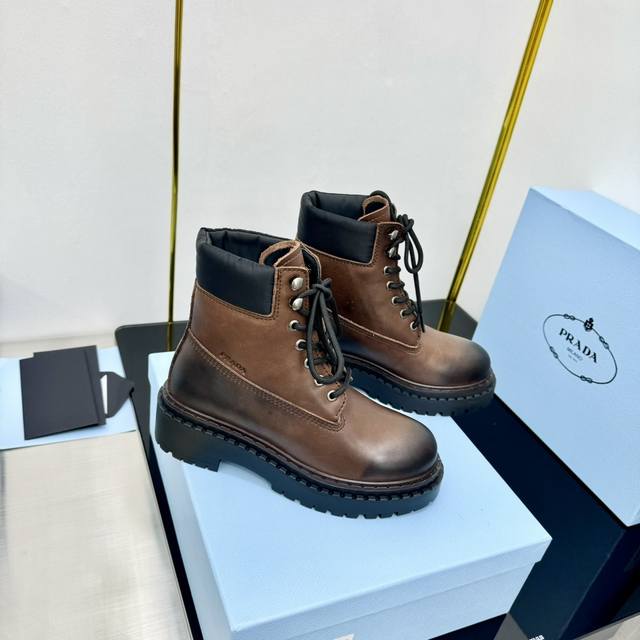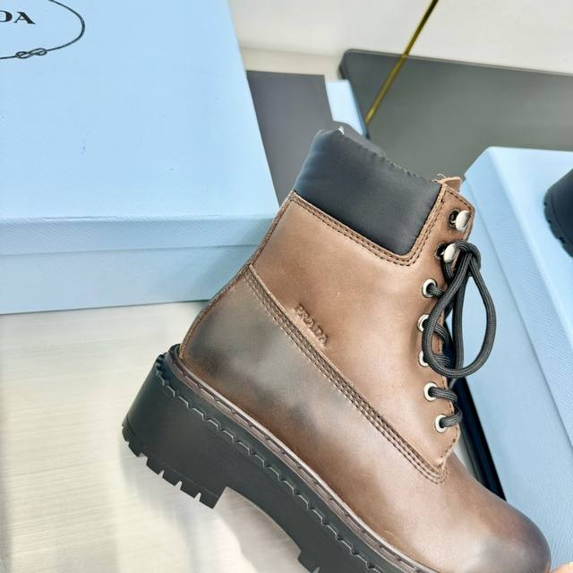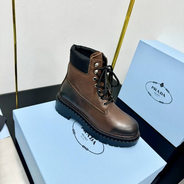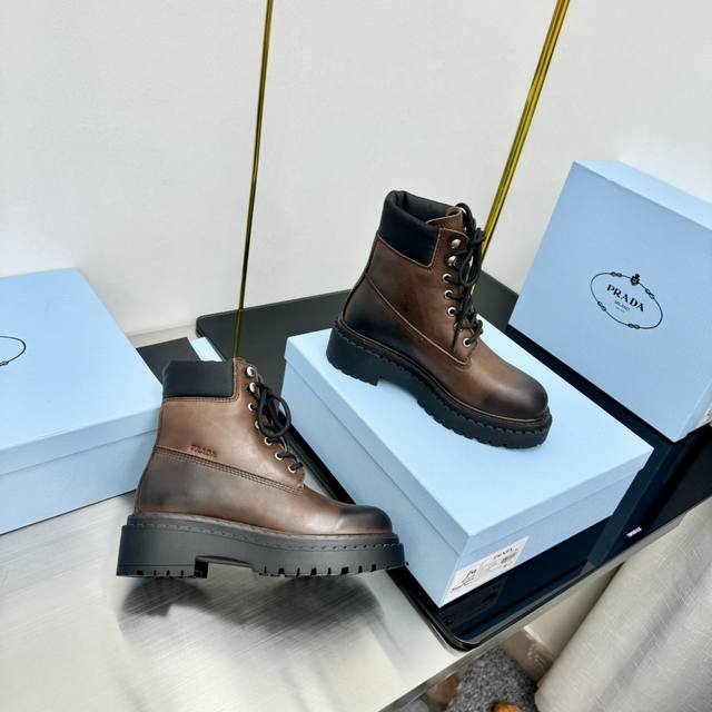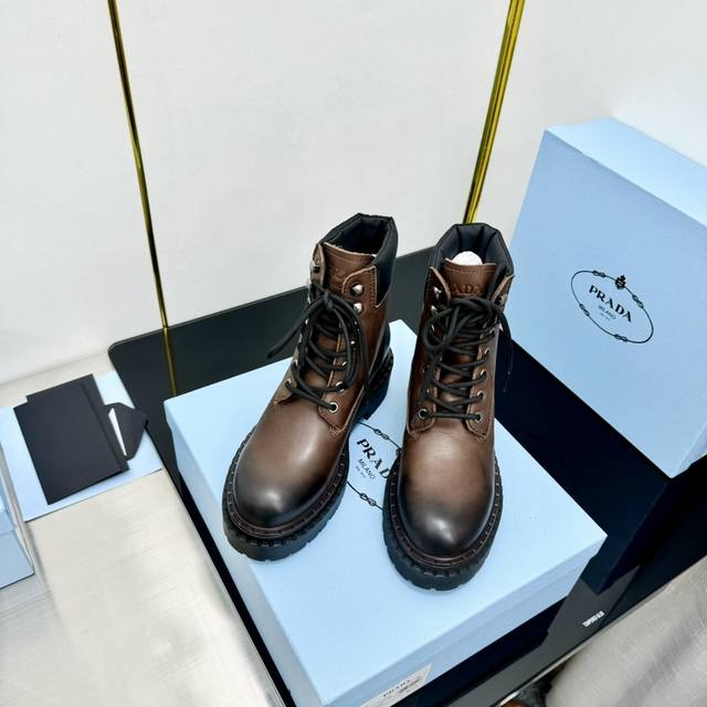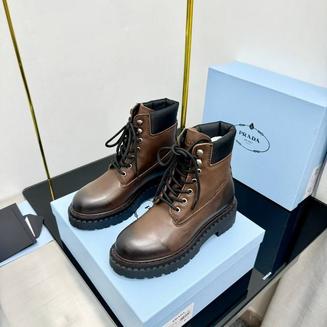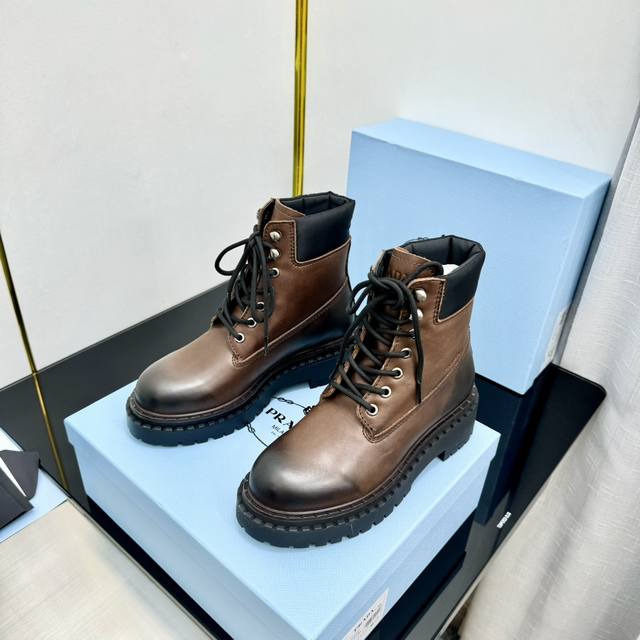 Top-tier version of Liu Wen and Yang Mi's same style height-increasing Chelsea ankle boots. Prada Fall/Winter new runway style brogue platform ankle boots. These look amazing on! They also elongate the legs. Vintage hand-rubbed finish, exuding high-end elegance. Material: Original custom cowhide. Lining: Sheepskin lining. Outsole: Original molded sole. Height: Approximately 4.5cm at the back. Size: 35-39 [40 pieces made to order, no returns or exchanges].