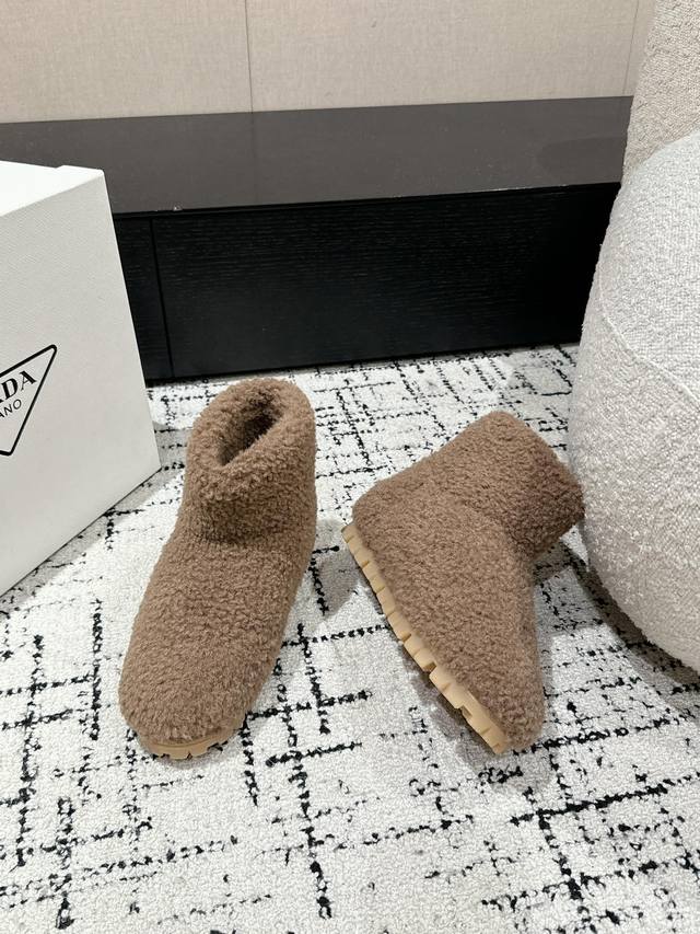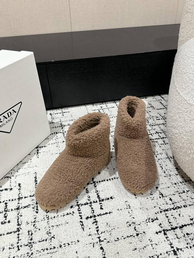 Top-tier version Ddd Prada* 24Ss Autumn/Winter Furry Teddy Snow Boots DDD Excellent craftsmanship and color for every style! Combining comfort, cuteness, fashion, elegance, and versatility, these boots are soft and comfortable, bringing warmth to autumn and winter. Enjoy comfortable walking from morning till night. Pair them with socks for easy style in all seasons. DDD Sizes: 35-41 Size 41 is custom-made and non-refundable DDD