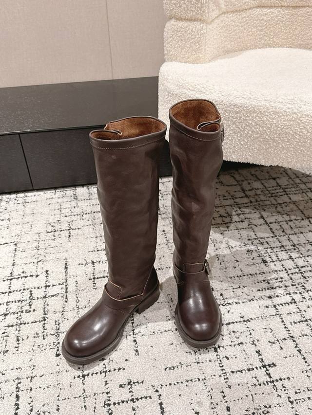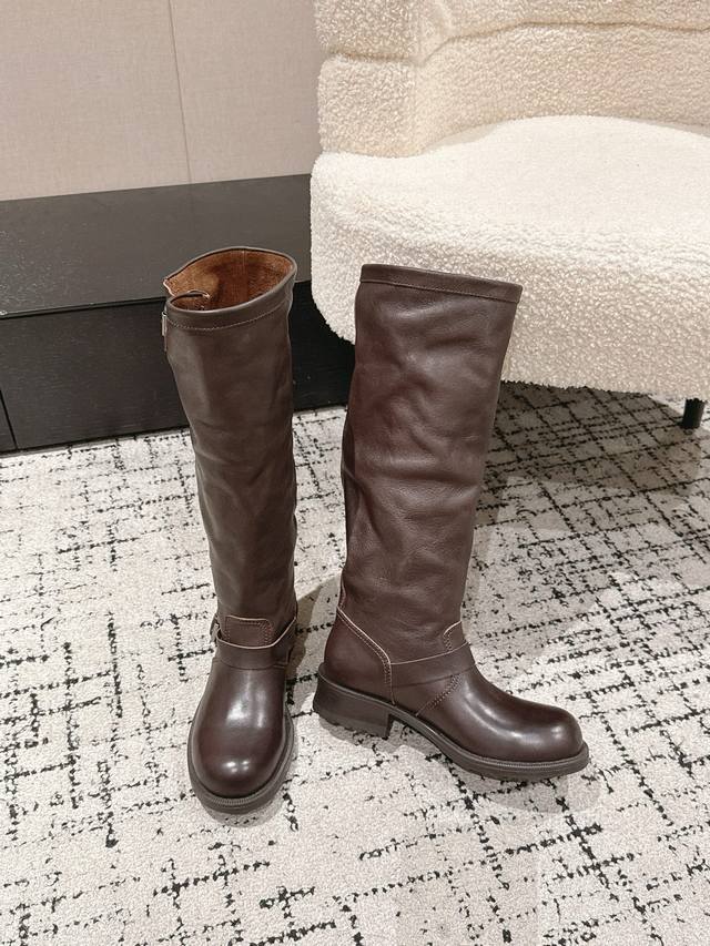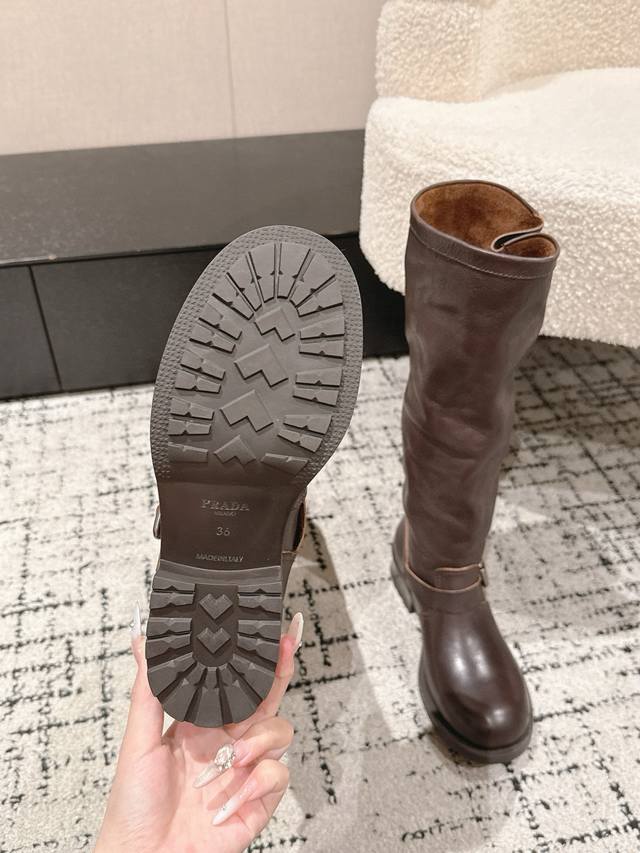 Prada 25 Ss Autumn/Winter New Wrinkled Boots Motorcycle Boots Long Boots