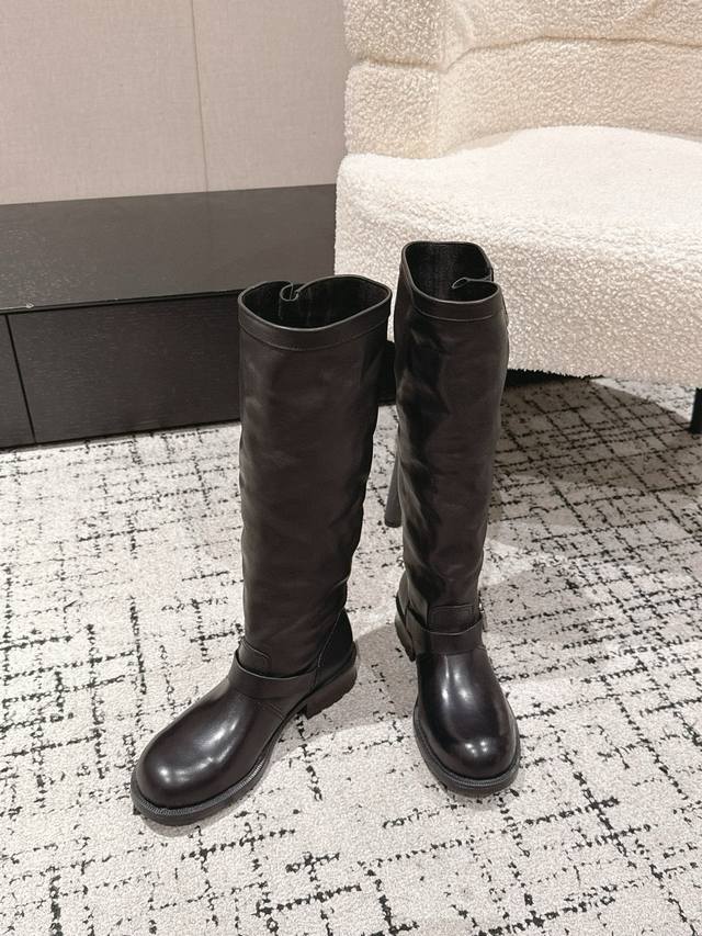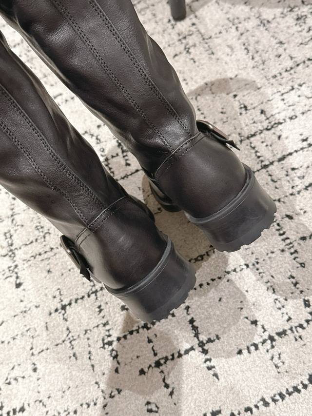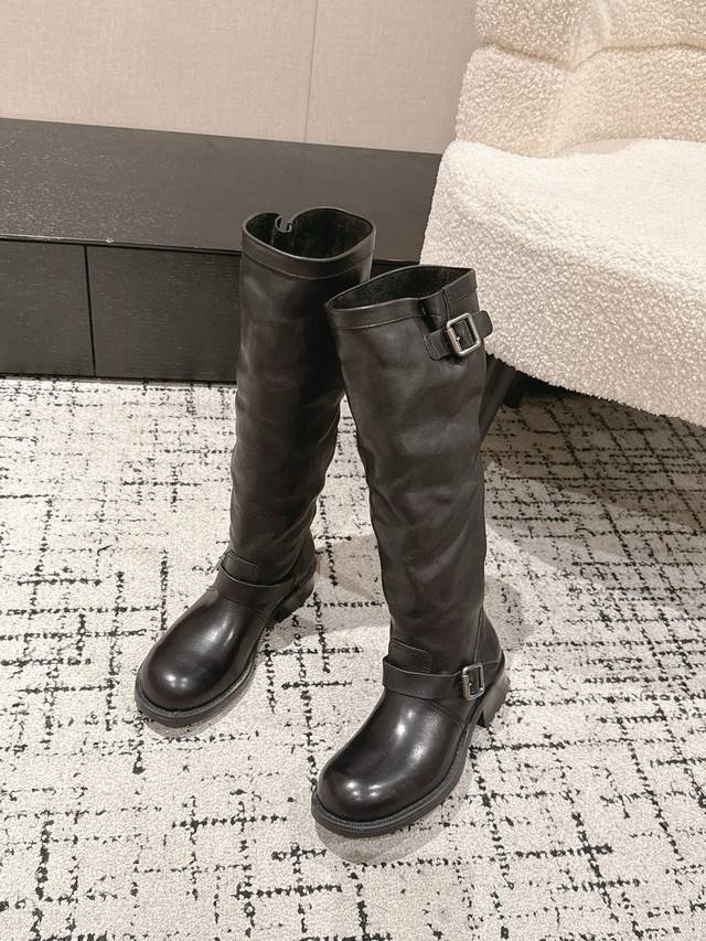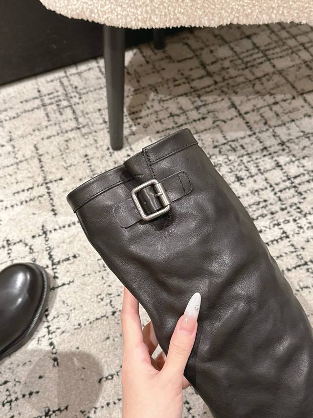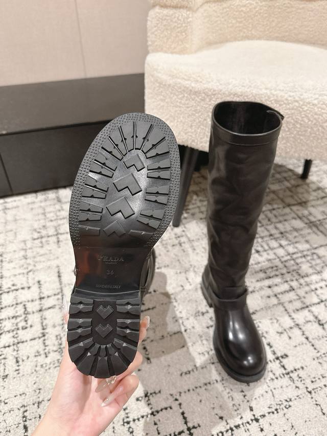 / Top-tier version Prada 25 Ss Fall/Winter New Wrinkled Boots Motorcycle Boots Lon
