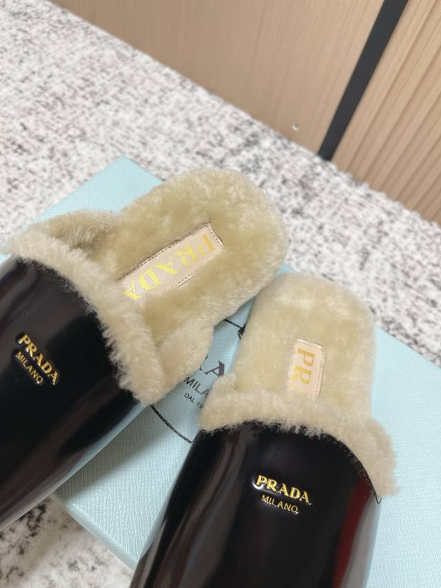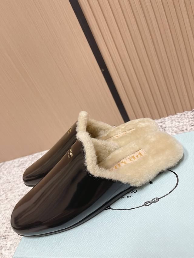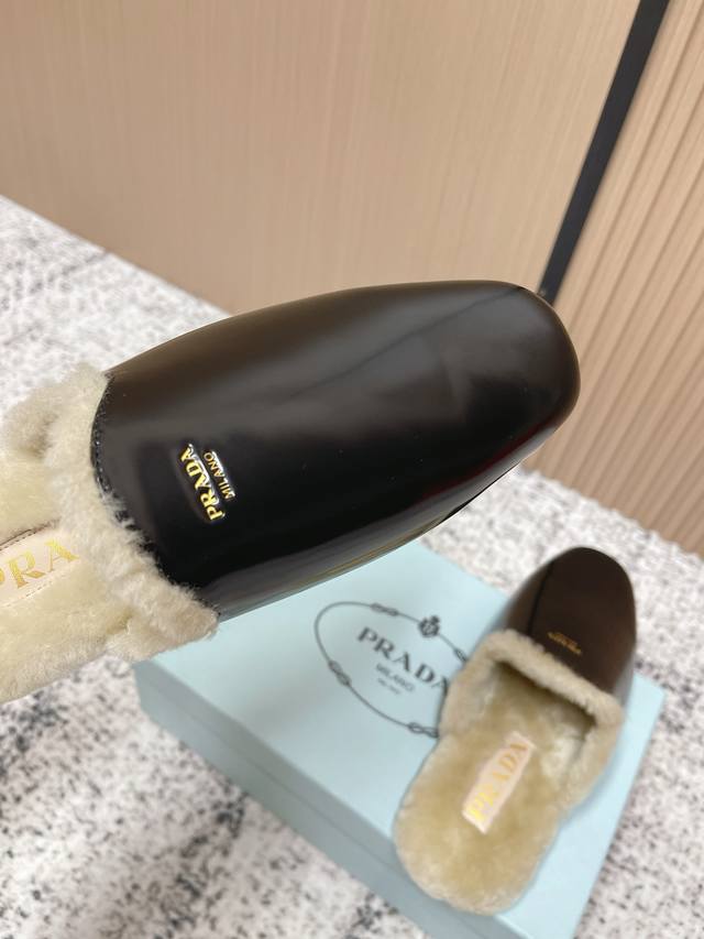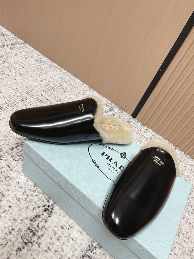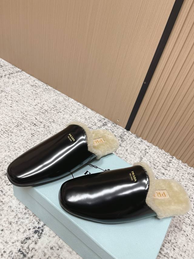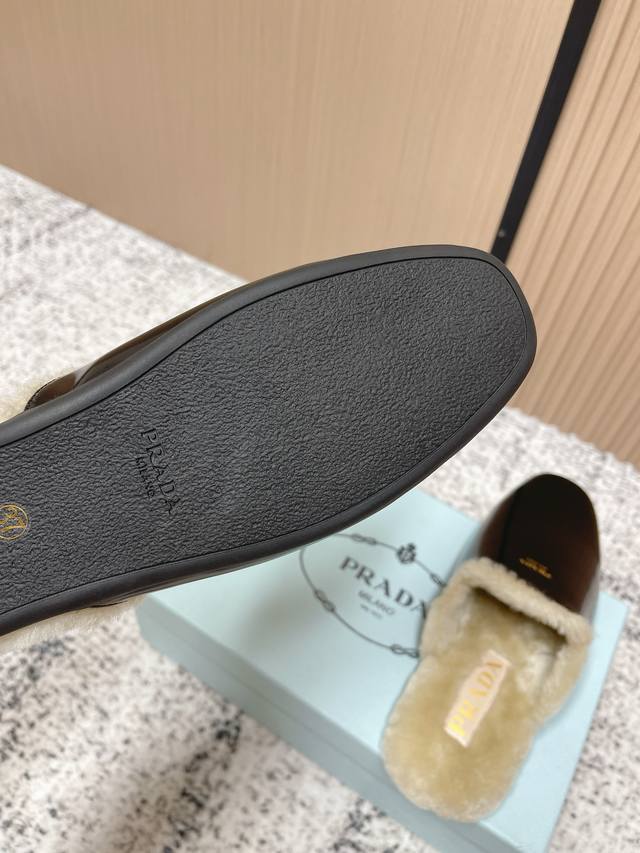 Top-tier version: DDD Prada 25Ss Prada Autumn/Winter New Plush Mules DDD These shoes blend luxurious texture with comfortable casualness. The upper is made of high-grade suede leather, and the plush design at the opening adds warmth and enhances comfort. The Prada logo on the shoe showcases the brand's style, presenting an overall retro yet fashionable light luxury style. DDD As mules, they are easy to put on and take off; the plush material provides some warmth in autumn and winter, suitable for short-term indoor and outdoor wear, combining aesthetics and practicality. DDD Upper: Open-label cowhide suede DDD Lining: Wool DDD Outsole: Rubber outsole DDD Size: 35-40 40 custom-made DDD
