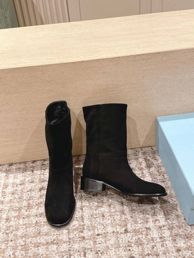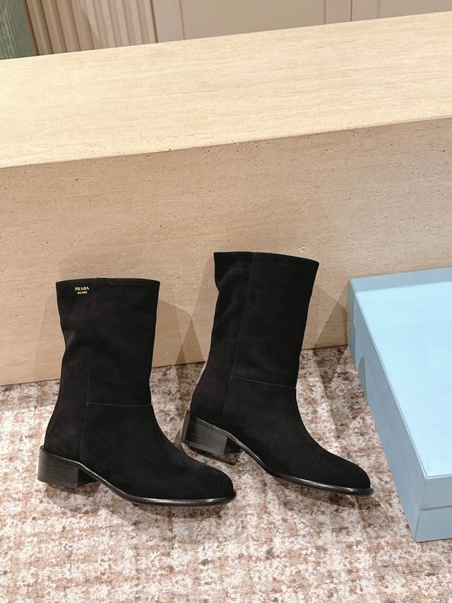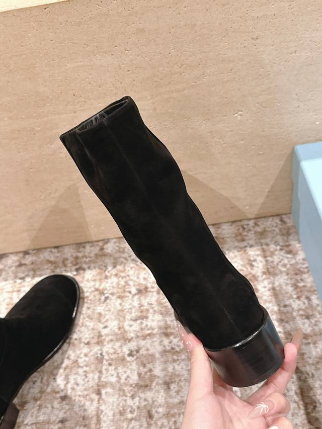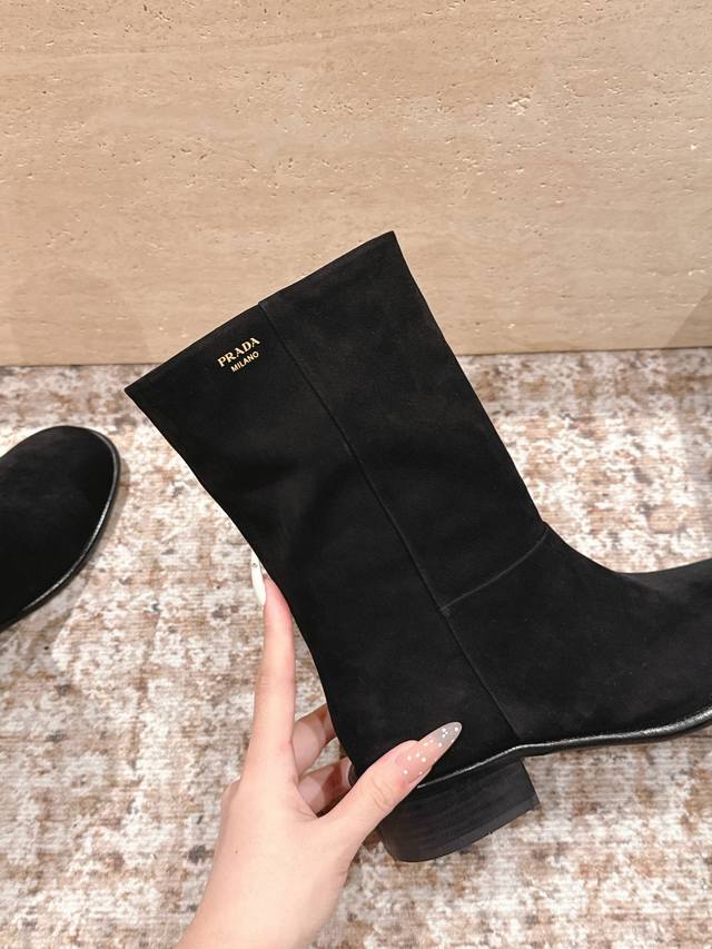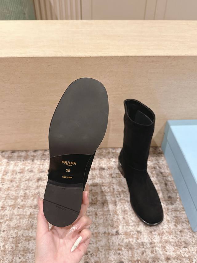 Top-tier version: Prada 25Ss square-heeled ankle boots DDD A series you can't buy in winter, definitely this year's hottest item!! Super beautiful! Prada boots are really amazing! They look sophisticated and make your legs look slimmer, perfectly capturing your style DDD Upper: Lambskin DDD Lining: Cowhide DDD Outsole: Genuine leather DDD Size: 35-40 40, 41 Custom orders are non-refundable DDD