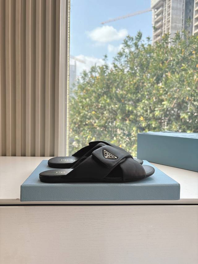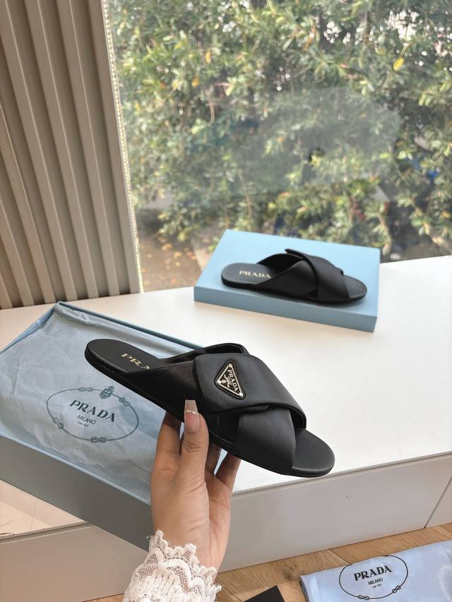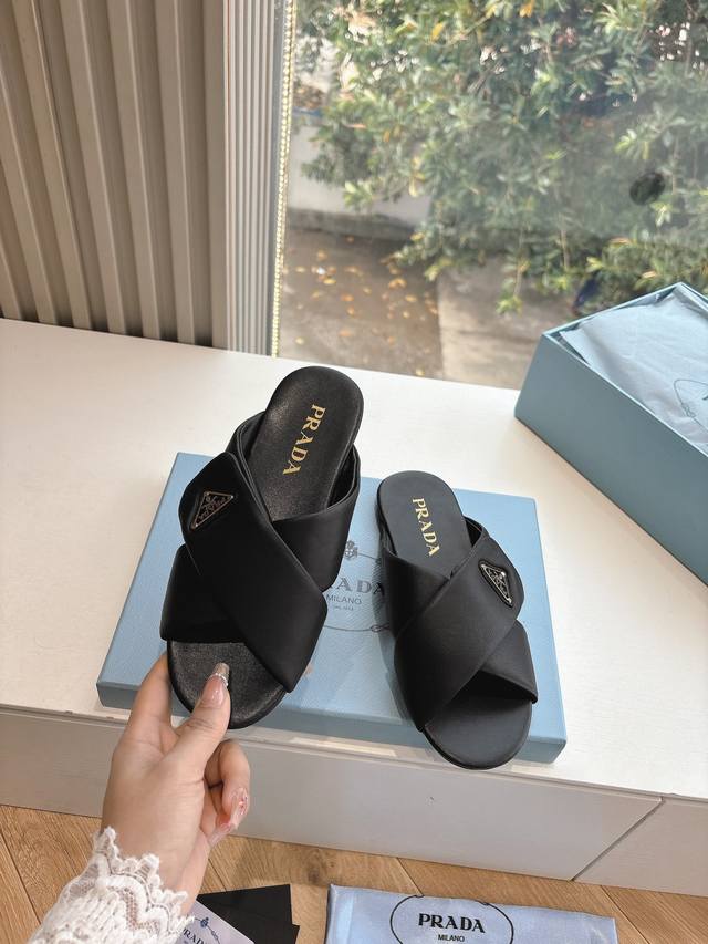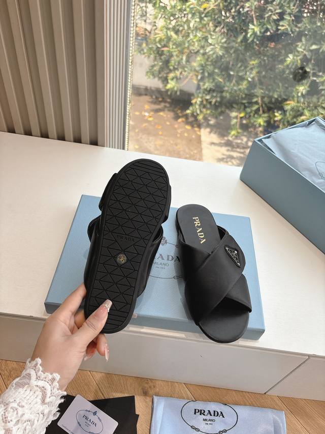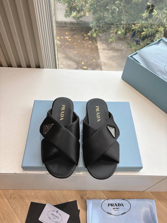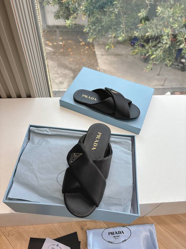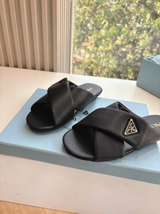 What you see is what you get G0286 Latest Series! Prada Cross-Style Bread Shoes 2025 Spring/Summer New Thick-Soled Sandals, Slippers, Velcro Triangle Buckle Bread Toe Half-Slippers, Latest Runway Series Classic Upgrade, Comfort and Style Combined, Every Color Looks Good, Design to Match Different Style Needs