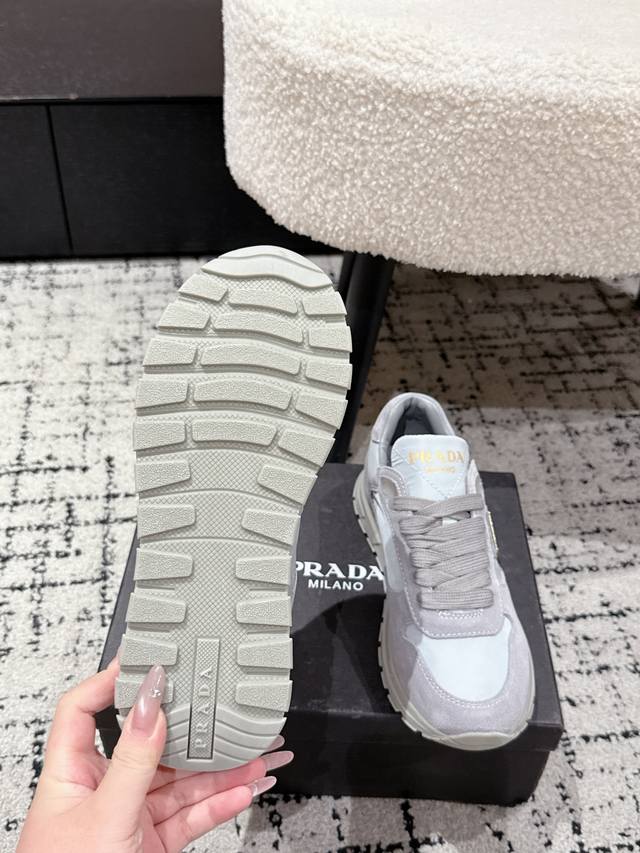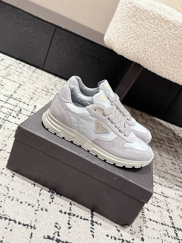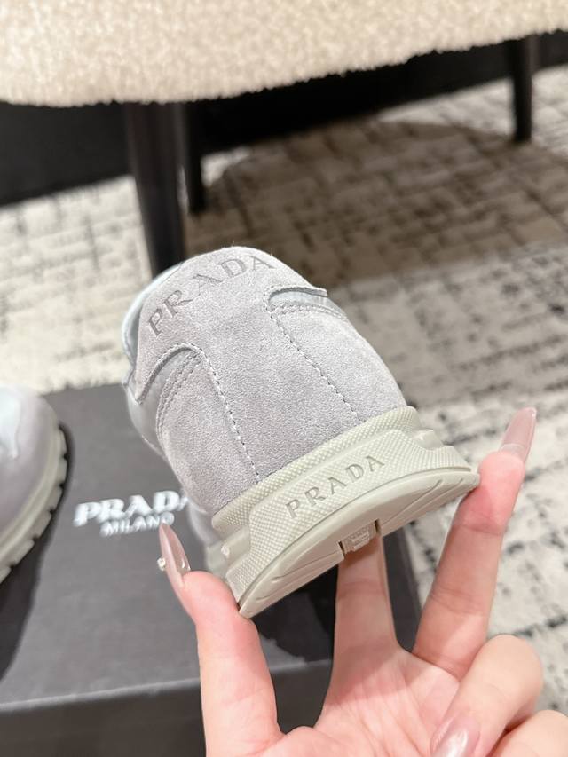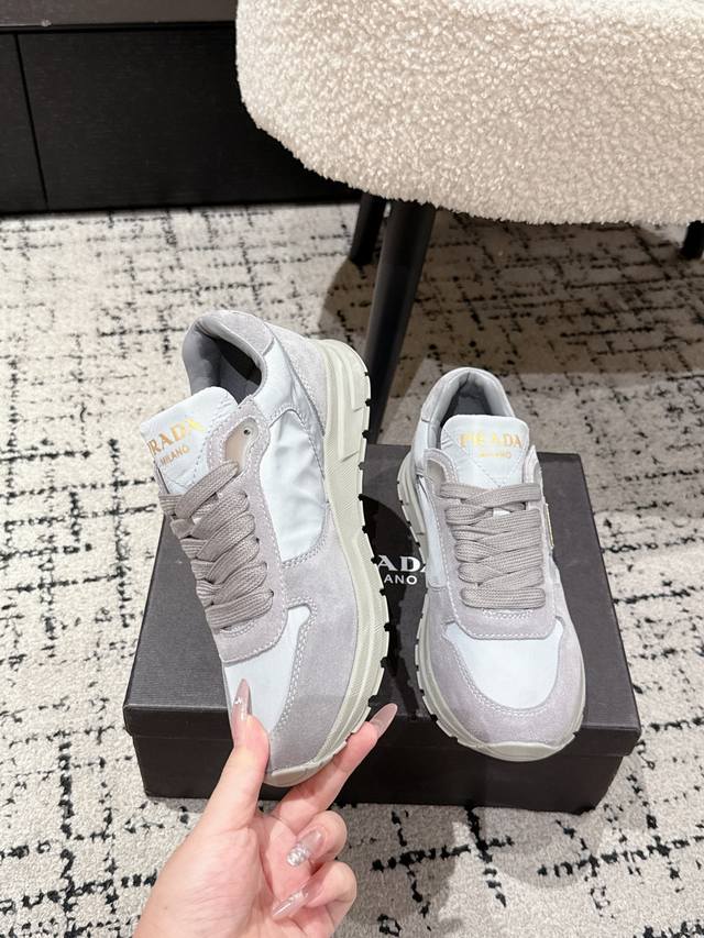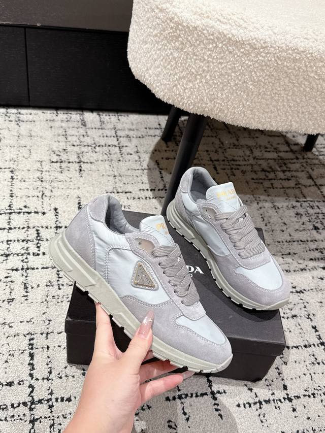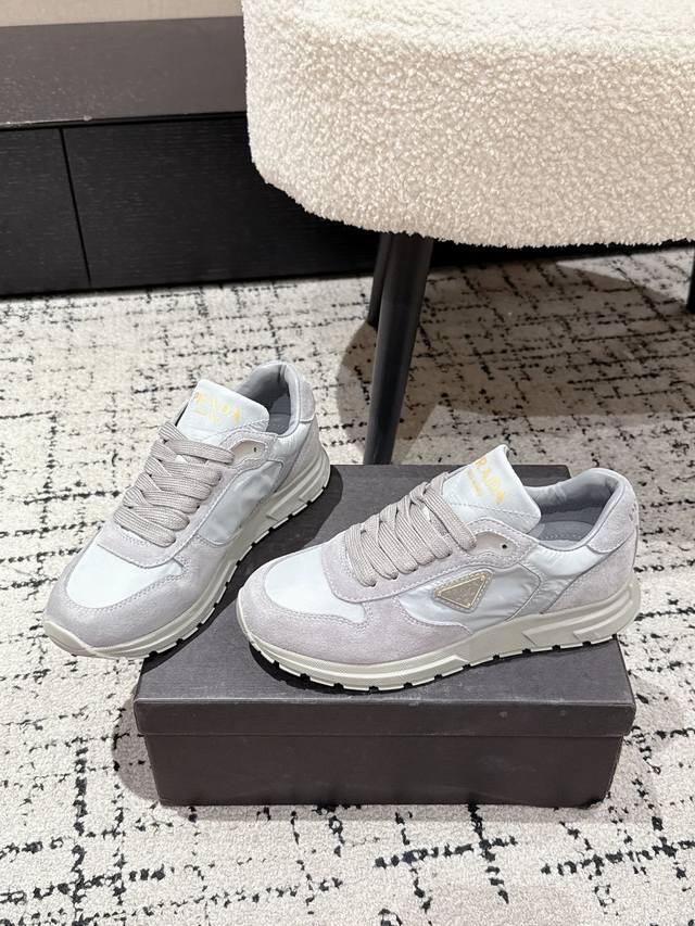 Women's Prada 25 Latest Re-Nylon Prax 2.0 Nylon Suede Lace-up Casual Shoes. Original purchase, developed as a proxy buyer version. A pair of sneakers, lightweight nylon and suede material, very comfortable to wear. Combining sporty, energetic, and fashionable styles. Upper: Imported suede calfskin high-gloss canvas. Lining: Perforated water-dyed sheepskin. Insole: Water-dyed cowhide. Outsole: Ultra-light TPU foam rubber two-tone molded outsole. Size: Women's 35-40. Size 40 is custom-made and non-refundable.