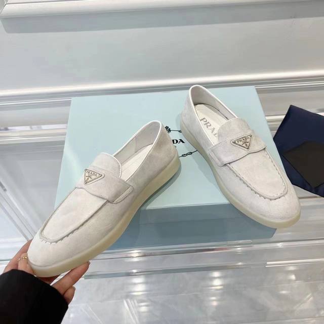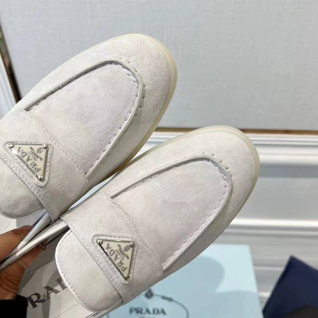 Women's/Men's Size 10 Prada New Style Loafers - Understated Luxury Slip-on Shoes, the Perfect Choice for the Affluent! The soft rubber sole is known for its cloud-like feel