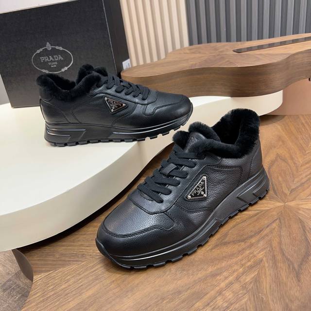 Code: Ys003545 Prada Prax Leather Casual Wool Shoes - Shipped! Top-quality Dongguan-made shoes! These sneakers blend style and comfort, with a sporty design defined by exquisite materials and details. The wool shoes incorporate typical Prada elements, featuring imported Italian ultra-soft top-grain cowhide leather, a genuine wool lining, a triangular enamel metal logo on the upper, a non-slip and wear-resistant rubber sole, geometric patterns, and a 4cm sole. High-end quality, a top choice for personal wear or as a gift. Comes with original box and dust bag! Sizes: 39-40-41-42-43-44 (Leather shoes sizes 38, 45, 46). Item No.: 2Ee443 (Leather ).