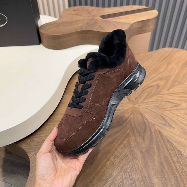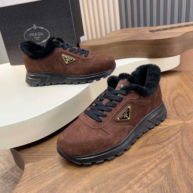 Code: Ys003545 Prada Prax Leather Casual Wool Shoes - Shipped! Top-quality Dongguan-made shoes! These sneakers blend style and comfort, with a sporty design defined by exquisite materials and details. The wool shoes incorporate typical Prada elements, featuring imported Italian ultra-soft top-grain cowhide leather, a genuine wool lining, a triangular enamel metal logo on the upper, a non-slip and wear-resistant rubber sole, geometric patterns, and a 4cm sole. High-end quality, a top choice for personal wear or as a gift. Comes with original box and dust bag! Sizes: 39-40-41-42-43-44 (Leather shoes sizes 38, 45, 46 available). Item No.: 2Ee443 (Leather ).