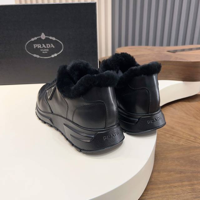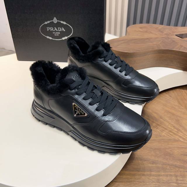 Code: Ys003545 Prada Prax Leather Casual Wool Shoes - Shipped! Top-quality Dongguan-made shoes! These sneakers blend style and comfort, with a sporty design defined by exquisite materials and details. The wool shoes incorporate typical Prada elements, featuring imported Italian ultra-soft top-grain cowhide leather, a genuine wool lining, a triangular enamel metal logo on the upper, a non-slip and wear-resistant rubber sole, geometric patterns, and a 4cm sole. High-end quality, a top choice for personal wear or as a gift. Comes with original box and dust bag! Sizes: 39-40-41-42-43-44 (Leather shoes sizes 38, 45, 46 available). Item No.: 2Ee443 (Leather ).