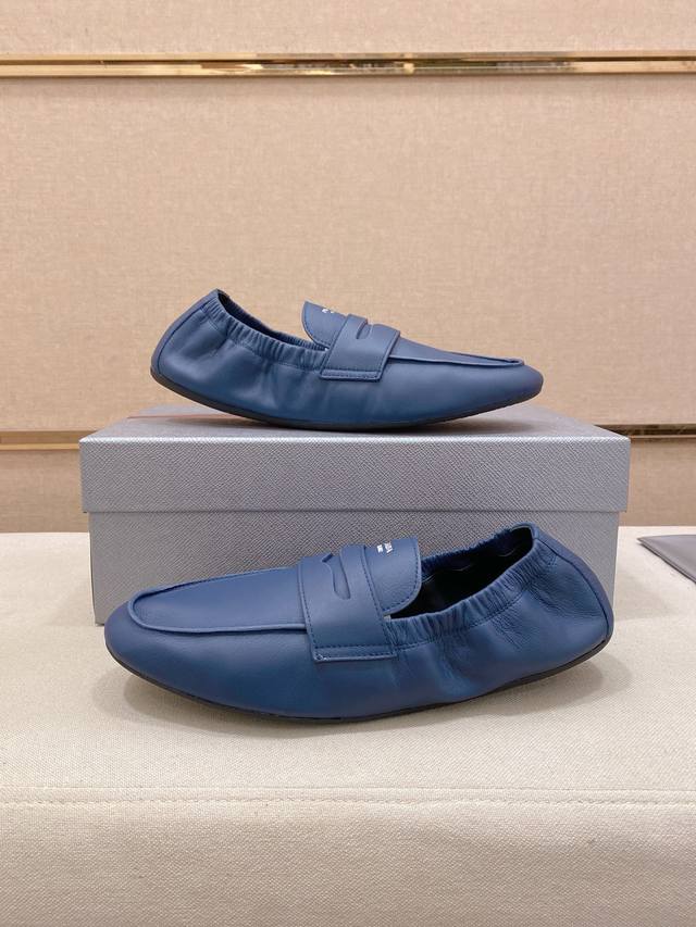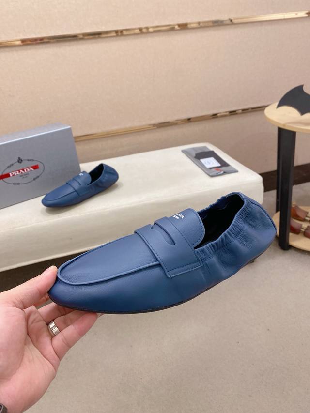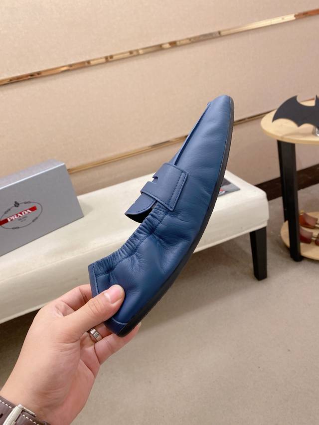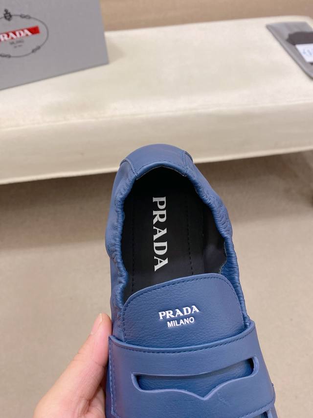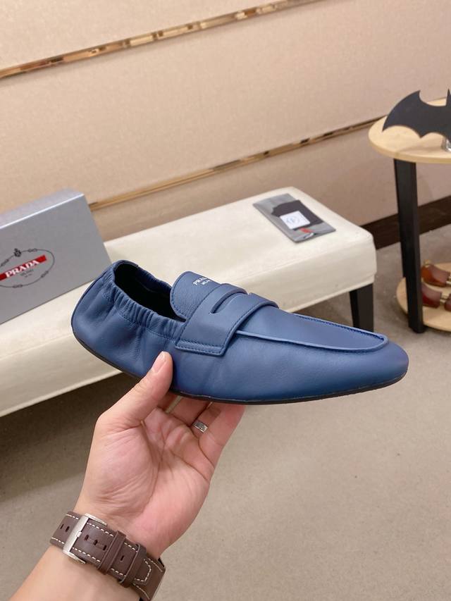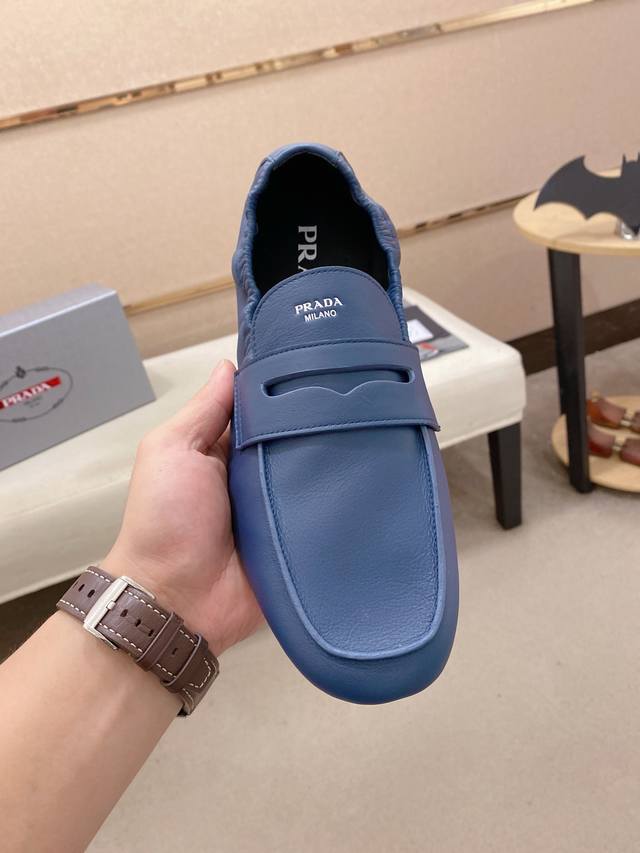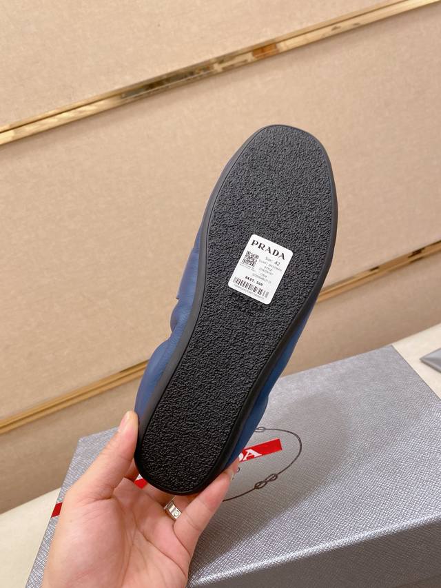 Factory direct, high-quality new Prada shoes, available at official Prada boutiques. These new men's shoes are made with premium top-grain cowhide leather and handcrafted. Features include a full cowhide lining, a high-end air-cushioned, non-slip rubber outsole, exquisite lines, a simple yet sophisticated design, comfortable and stylish, perfect for casual wear and travel. Sizes: 38-44.