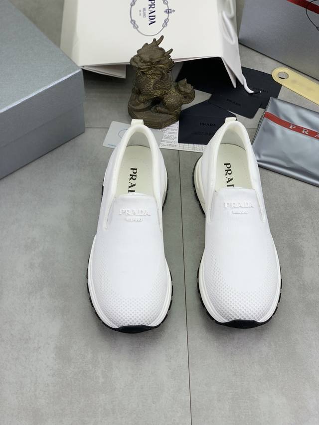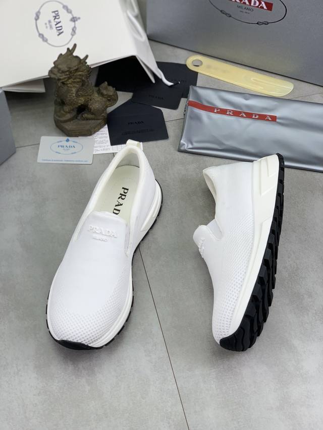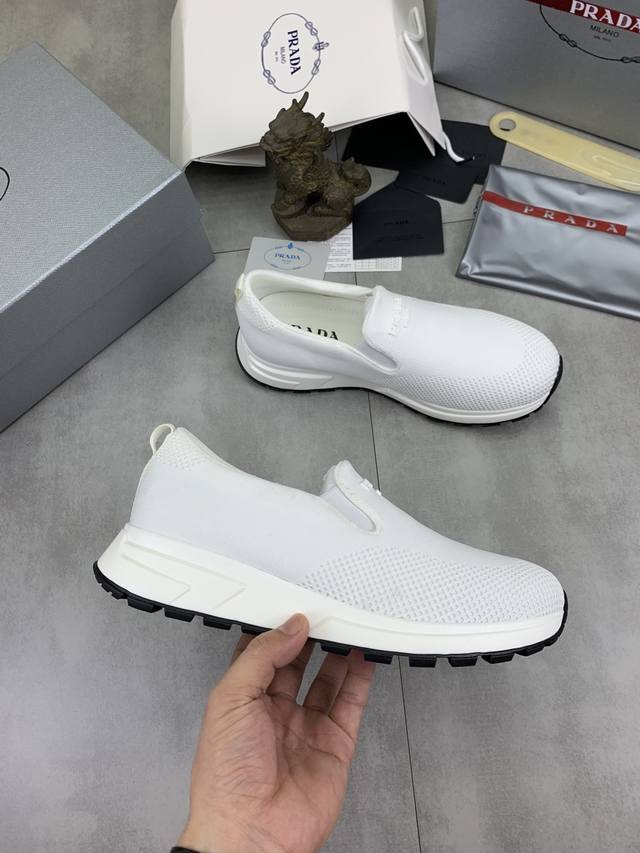 Factory direct price. A must-have summer style from the Flyknit series, a top seller on the official website. A trendy Prada bestseller, this avant-garde and versatile men's shoe features a custom-made mold, 1:1 cowhide upper, original imported cowhide lining and insole; stylish, trendy, eye-catching, and high-end. It will overturn old ideas, offering you a high-end, comfortable, and stylish shoe with premium quality. Sizes: 38-45. 6 colors available.