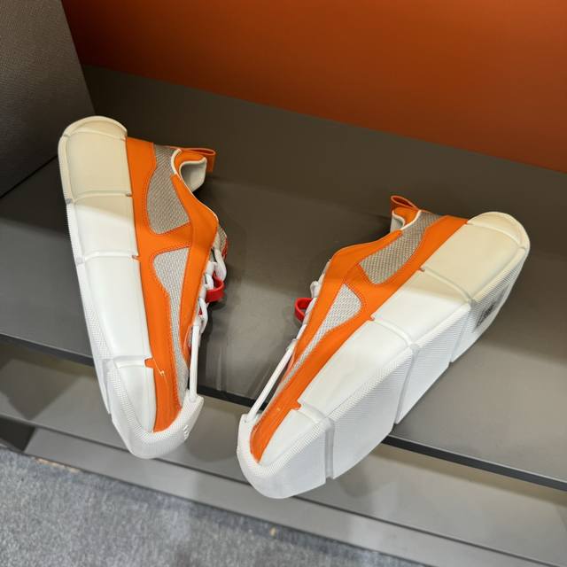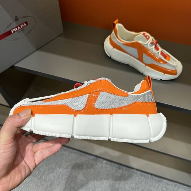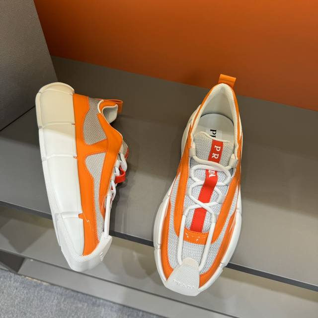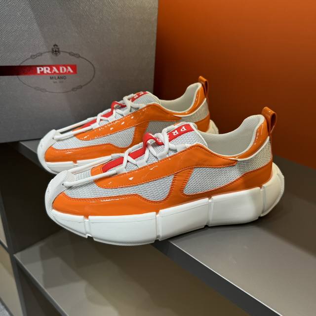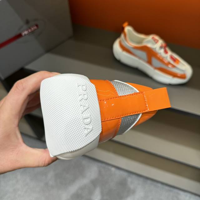 Factory direct price for men's sports shoes, original quality, sizes 38-45. Prada men's lace-up leather casual sports shoes. The upper is made of cowhide leather with breathable mesh for a soft and comfortable feel. The tongue features the Prada brand logo. The thick rubber sole echoes the red label on the tongue. Stylish and elegant design with meticulous details. A super fashionable casual sports shoe with excellent breathability! DDD