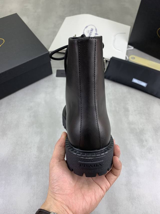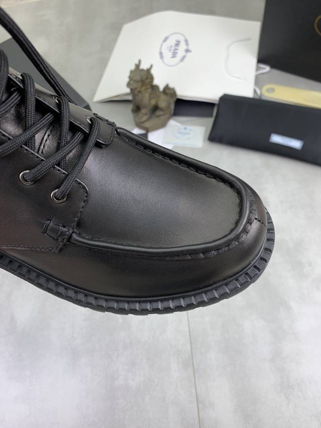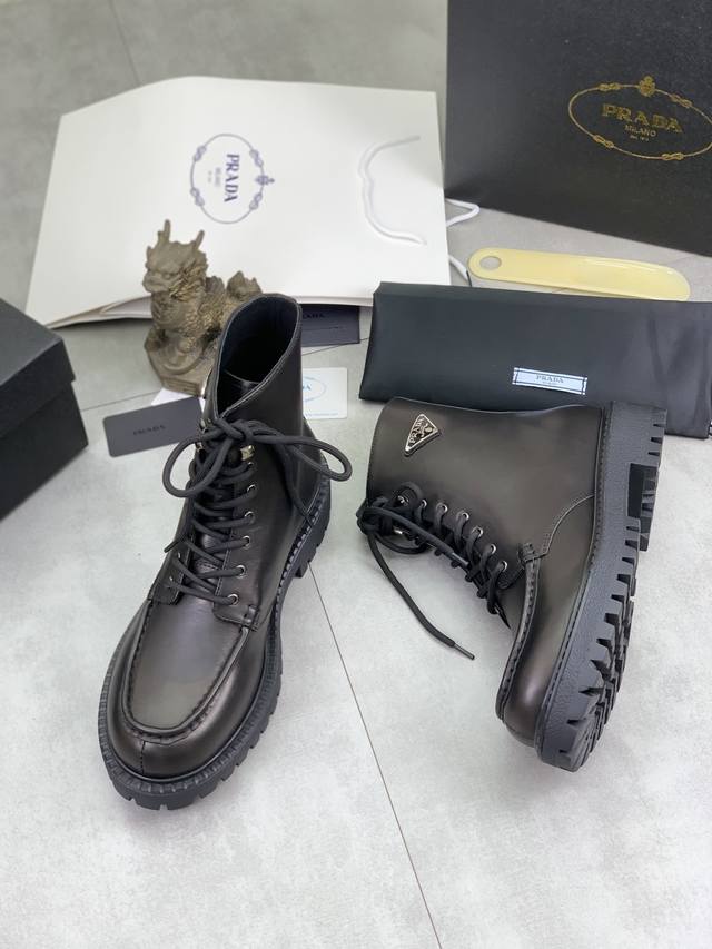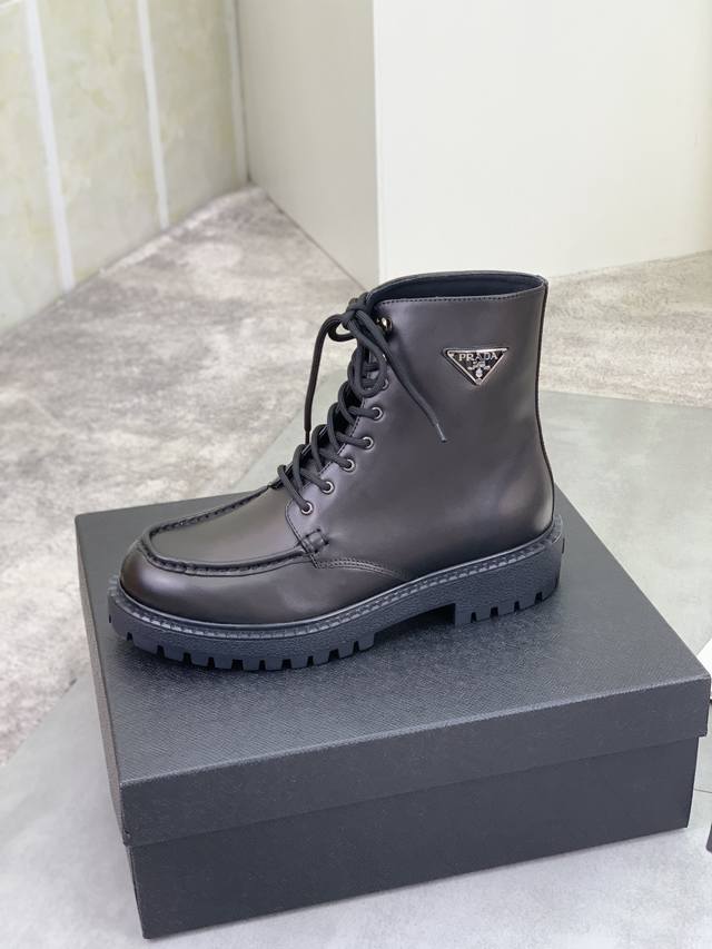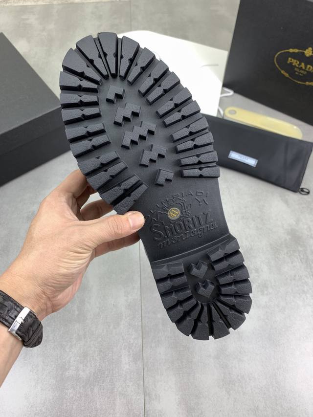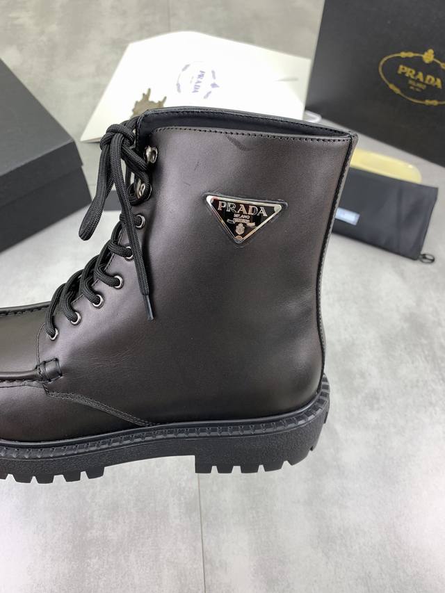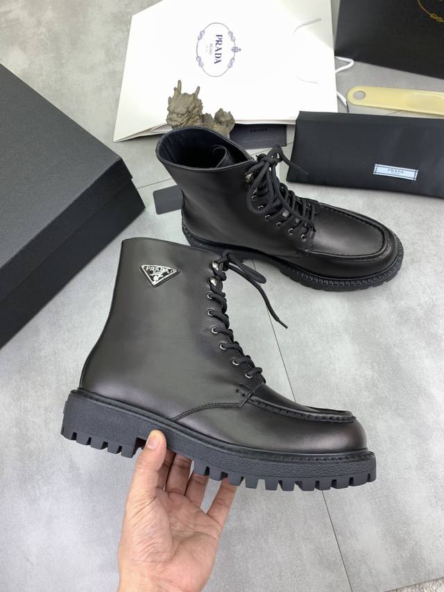 Factory direct price, genuine high-top boots, water-dyed denim lining, original quality Prada. Prada original single purchase, high-end business leather shoes. Material: Italian imported calfskin, water-dyed denim lining, original foam outsole, exquisite workmanship, real product photos. Size: 39-45 DDD