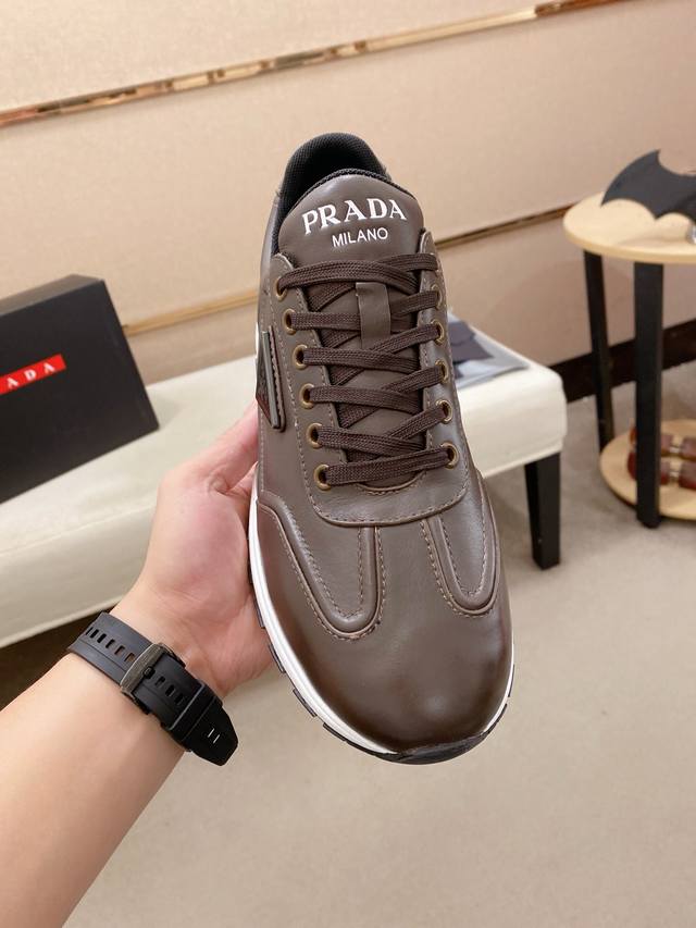 Factory direct price, high-quality new Prada shoes, Prada boutique release, new men's shoes, made with selected top-grain cowhide leather, purely handcrafted. Lining: Full cowhide lining. High-end air-cushioned molded non-slip rubber outsole, exquisite lines, simple and stylish, comfortable and high-end, suitable for casual travel. Sizes: 38-45 DDD